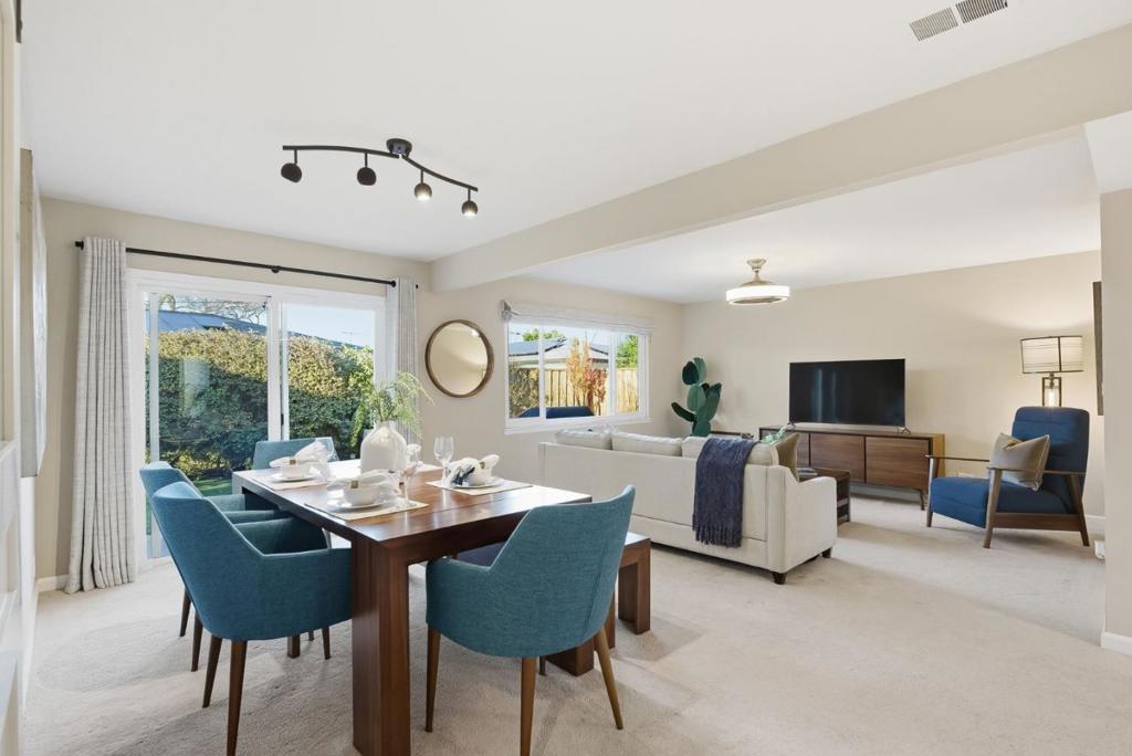 Set on one of Cambrians most sought-after neighborhoods, this well-maintained single-story home offers comfort, functionality, and timeless appeal. The 3-bedroom, 2.5-bath layout is thoughtfully designed with natural flow between living spaces. The eat-in kitchen offers generous counter space and light wood cabinetry, opening to the dining and family rooms ideal for everyday living and casual gatherings. Newly cleaned carpet enhances the family and dining areas, while beautiful parquet flooring adds warmth and character throughout the living room, hallway, and bedrooms. The formal living room is filled with natural light and features a wood-burning fireplace and bay window, creating a welcoming atmosphere. The primary suite includes a walk-in closet with built-in organizers and an en-suite bathroom finished in classic marble. Additional conveniences include an interior laundry room with adjacent half bath. The private backyard is spacious and serene, complete with mature landscaping and a patio shaded by a gazebo perfect for outdoor dining, quiet mornings, or evening relaxation.