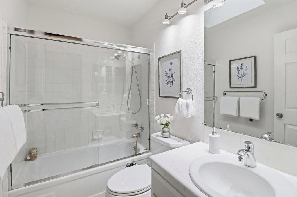 Welcome home to this inviting 3-bedroom, 3.5-bath Tudor style townhouse that feels like a single-family home, offering a spacious layout and comfortable, easy living. A tiled entry welcomes you inside, with a stairway leading to the main living level featuring a generous living room and dining area that opens to the roomy kitchen. The kitchen offers granite countertops, ample cabinetry, stainless steel appliances, an eat-in area, and a skylight that provides natural light. There are 3 bedrooms and 2.5 baths, including the primary suite with a walk-in closet and sliding doors leading to a large private patio and yard - an ideal setting for outdoor entertaining, relaxing, or enjoying the hot tub. The lower level features a large, versatile room with a full bath, perfect for a home office, guest suite, game room, or flex space. Additional highlights include central air conditioning, a 2-car attached garage with EV charger, a deeded parking space in front of the home, extra storage, and added skylights that bring in additional natural light. The home is also conveniently located near shopping, transportation, and walking/biking trails.