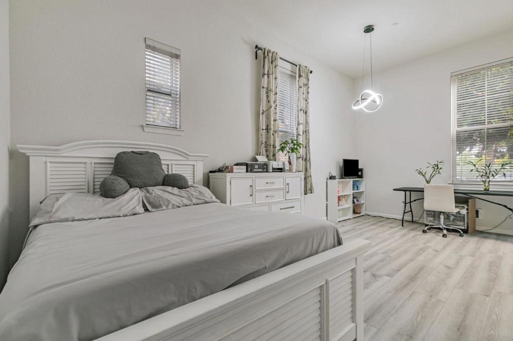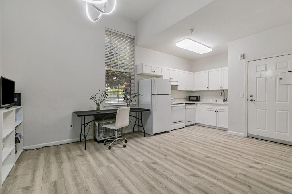 Step into this inviting ground-floor 1-bedroom, 1-bath condo nestled in a secure gated community. Perfectly positioned near SJSU, this residence delivers effortless city living at its finest. Discover an airy, open floor plan enhanced by soaring ceilings and contemporary finishes. The kitchen shines with crisp white cabinetry, streamlined countertops, electric range, refrigerator, dishwasher, plus an in-unit washer/dryer combo. The bath showcases fresh, updated styling with an expansive vanity, sleek fixtures, and tub-shower combination. The versatile living and sleeping space adapts beautifully for both unwinding and working, bathed in abundant natural light from oversized windows. LVP flooring flows seamlessly throughout, adding modern appeal. Benefit from controlled access entry and organized mail area, plus one dedicated parking spot with extra street parking available for visitors. Community highlights include a shimmering pool and meticulously landscaped grounds. Commuters value quick freeway connections nearby. With SJSU, restaurants, San Pedro Square, nightlife, and public transit all within reach, this home perfectly balances comfort, accessibility, and vibrant lifestyle. Perfect for students, educators, or anyone seeking move-in-ready urban convenience!