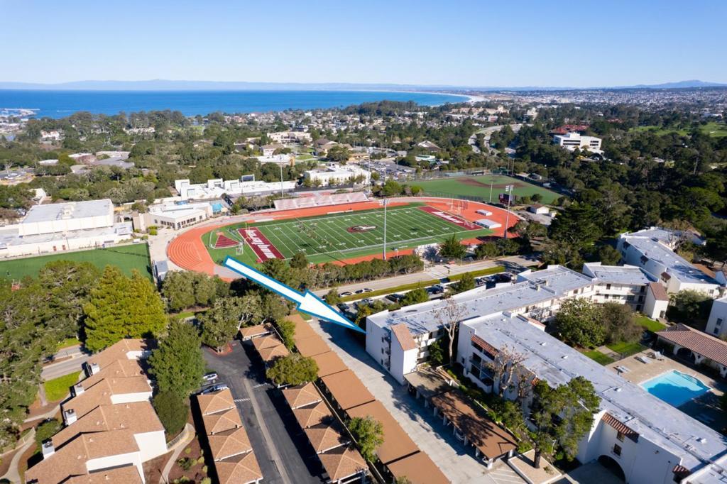 Arguably the best one-bedroom ocean-view condo in the Ocean Forest community, this private corner/end unit delivers coastal living done right. Located on the second story, the home offers added privacy, abundant natural light, and an ocean-view balcony that feels like your own front-row seat to Monterey's coastal atmosphere. Inside, the updated kitchen features rich wood cabinetry, granite countertops, tile flooring, a gas range/oven, dishwasher, and ample storage functional, warm, and ideal for everyday living or weekend hosting. Real hardwood floors extend through the living room and bedroom, complemented by radiant floor heat and central heating for year-round comfort. The refreshed bathroom includes a shower-over-tub and updated vanity, while a generous walk-in closet discreetly houses a high-end Bosch washer and dryer. Step outside to your private balcony and enjoy the ocean view perfect for morning coffee or evening wind-downs. Pets are welcome, making this an ideal home for dog lovers who value coastal walks close to home. One nearby covered parking space is included. Conveniently located with quick access to Highway 1 and within walking distance to El Estero Park and Monterey Peninsula College. HOA is $467/month and includes trash, sewer, and water. Come fall in love!