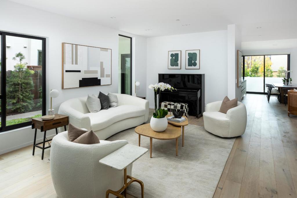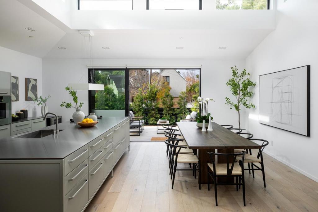 Designed for modern living, this custom designed home completed in 2023 features an open-concept layout seamlessly blending the living, family, dining and kitchen. Wide-plank hardwood floors throughout, and the living area offers a gas fireplace.The sleek European kitchen showcases cabinetry imported from Denmark,and top-tier appliances including dual built-in Miele refrigerators, Miele dishwasher, Gaggenau oven, and microwave/steam oven, walk-in pantry,12-foot ceilings, celestial windows,and sliding Fleetwood doors opening to a front patio creating indoor-outdoor living. The main-level primary suite (with option for second upstairs primary suite) has backyard access, a customized walk-in closet, and a spa-like bath with dual vanities, Keuco lighted medicine cabinets, and a glass-enclosed shower. An additional full bath with laundry completes the main level, while Miele washer and dryer sets on both floors add convenience. A top-of-the-line Mitsubishi heat pump provides efficient heating and cooling. Upstairs are three spacious sound-insulated bedrooms with custom built-in closets and a generous lounge area. Beautifully landscaped creek-side setting, 1-car garage, prime location near downtown Palo Alto, Menlo Park, Stanford University, excellent schools, and Highway 101.