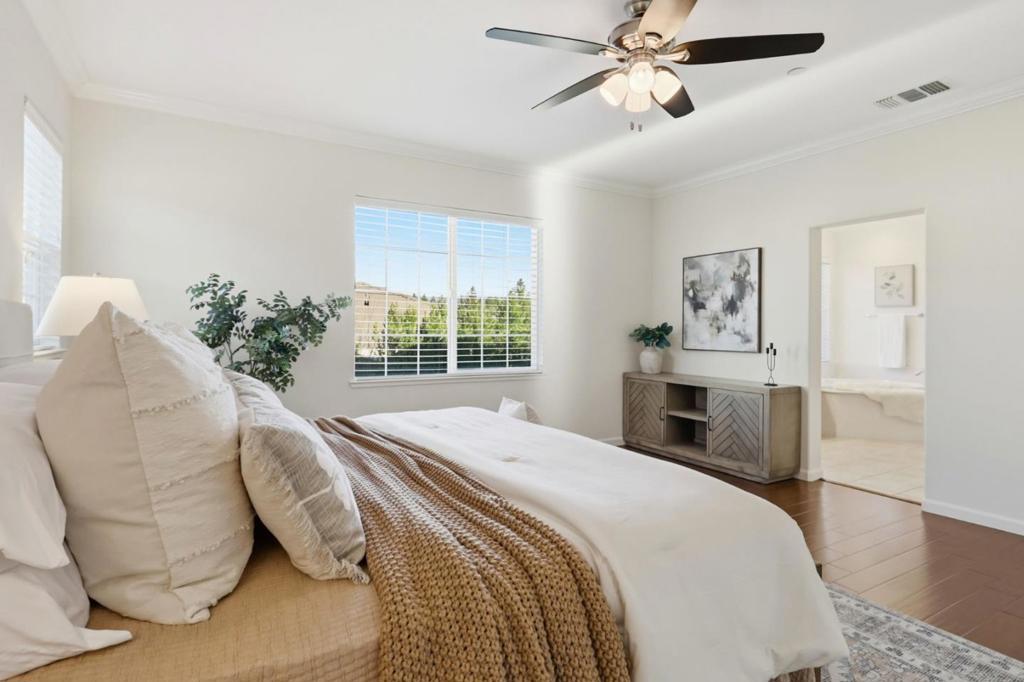 Don't miss this fabulous 10 year-old Meritage home in the Stonebridge community! This is the largest floor plan which includes 5 beds | 4.5 baths, a formal dining room, butler's pantry and a pocket office near the garage owner's entry. Entertain friends and family comfortably in the open-concept kitchen that flows into the great room with a large walk-in pantry. Perfect for guests or extended family, there is a bedroom with a full bath on the main floor. The upstairs loft is a great space for a movie or game night. Truly a retreat, come home, unwind in the expansive primary suite with a deep soaking tub, dual vanities and a large walk-in closet. Beautifully painted to showcase all the gorgeous cabinetry throughout with beautiful tile and hardwood floors! Outdoor kitchen with a built-in gas barbecue, refrigerator and tile countertop. Pavers complete the hardscape, raised beds in the back garden are a show stopper. Energy-efficient home with 16 Panel Sun Power Solar System that is owned not leased. Lovely views, minutes from downtown Morgan Hill with all its many restaurants. Very much a small town feel with wineries nearby, hiking trails for the adventurous walks, hikes & runs. At the time of purchase this home commanded a lot premium of $15K and approximately $100K in upgrades.