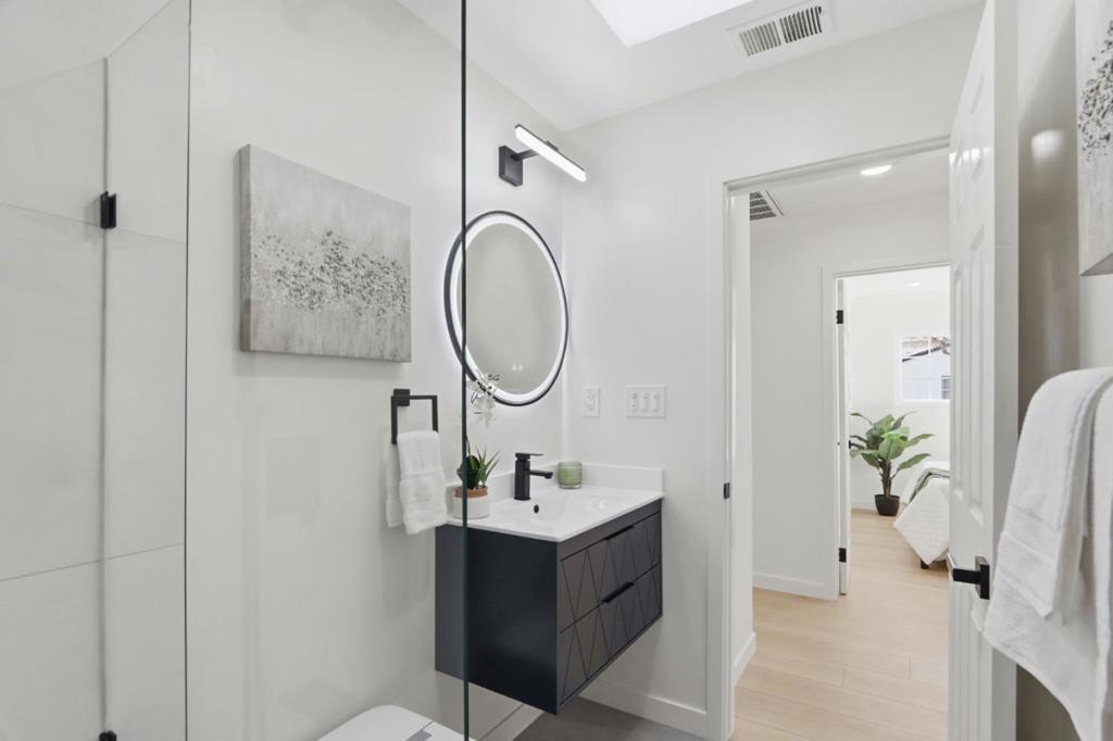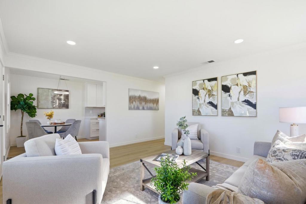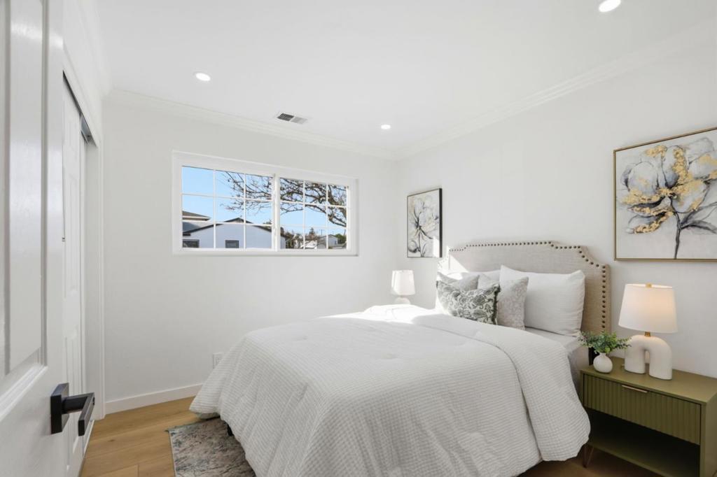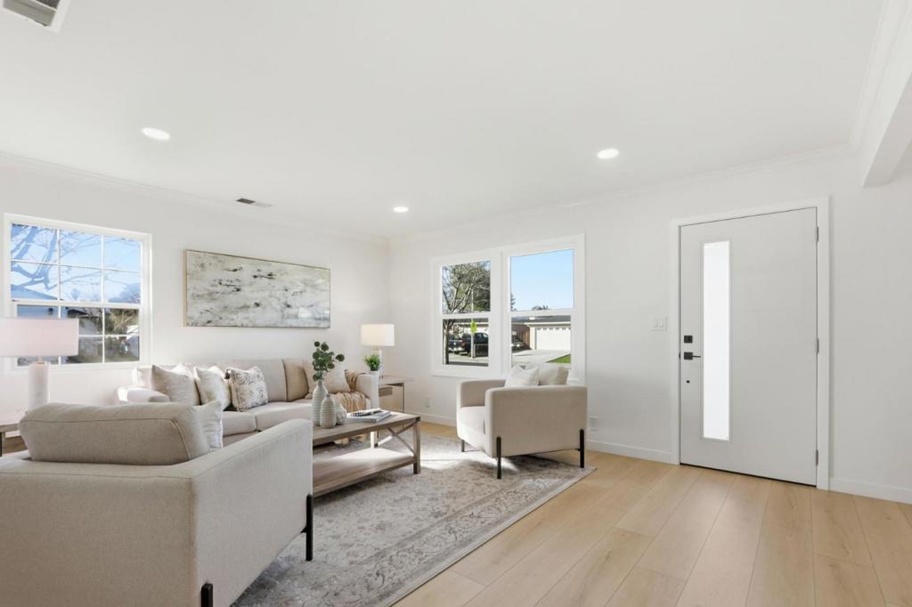 Extensively renovated from the studs with city-approved plan & permit, this turnkey home delivers modern luxury just minutes from NVIDIA headquarters in Santa Clara. Brand-new roof, complete new whole house electrical wiring, new electrical sub-panel, updated plumbing with water-conserving fixtures and anti-backflow devices. High-efficiency HVAC system, 200-amp electrical panel, central AC, and replaced sewer lateral for maximum peace of mind and efficiency. Bright, airy living room flooded with natural light. The gourmet kitchen is a standout, featuring sleek quartz countertops, custom contemporary cabinetry, stainless steel appliances, and thoughtful design perfect for cooking and entertaining. Luxurious bathrooms showcase floating vanities, high-end modern tiles, and frameless glass showers. Enjoy a dedicated family room for relaxed gatherings. Smart devices include Nest thermostat and video doorbell. Toilets with self heated seats and flush sensors. Located on a peaceful street with unbeatable access to Silicon Valley's premier tech corridor, this home offers the perfect blend of contemporary style, quality craftsmanship, and everyday convenience. Don't miss this exceptional opportunity, schedule your private tour today and experience the ultimate lifestyle upgrade!