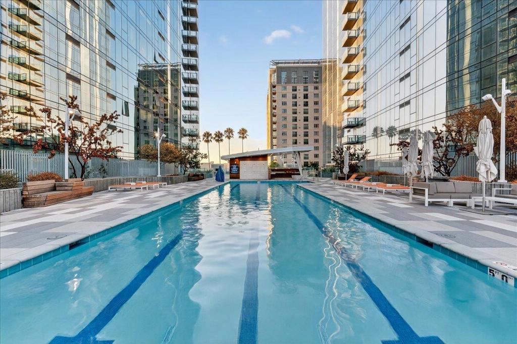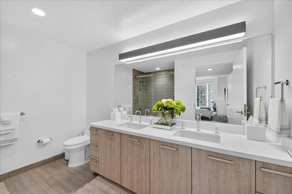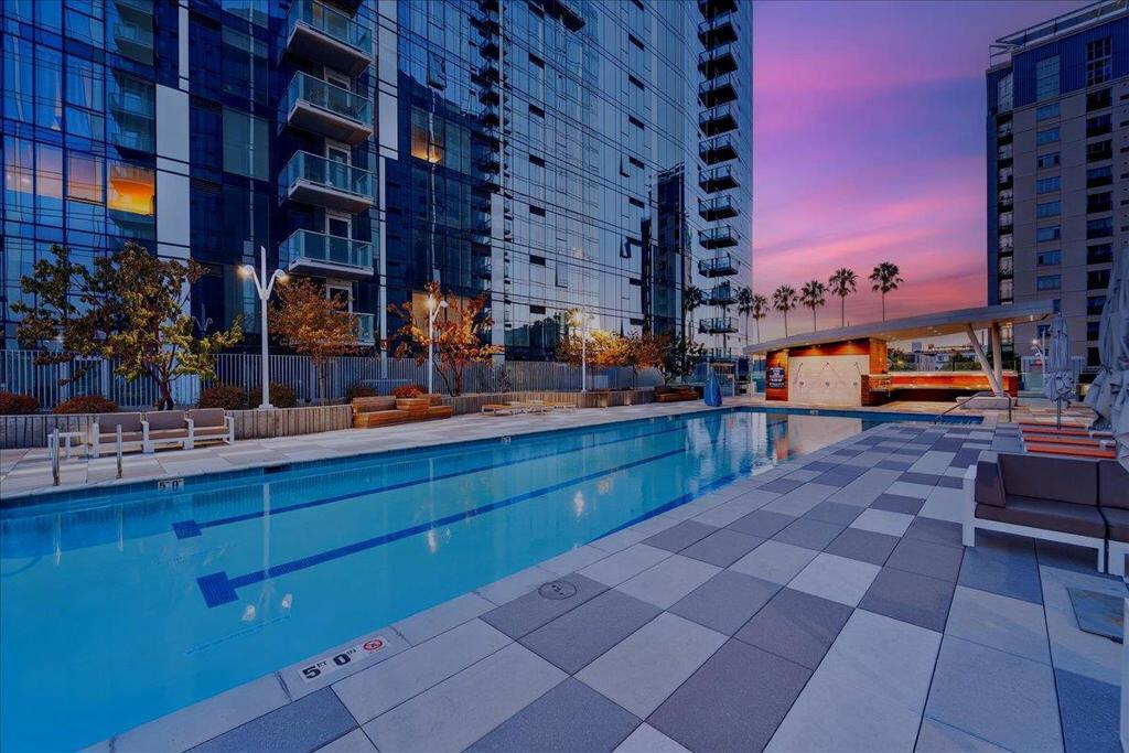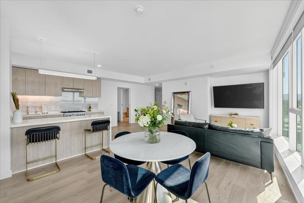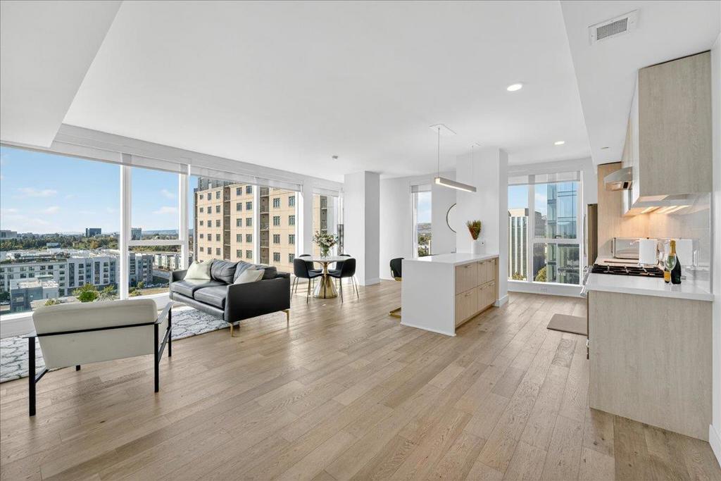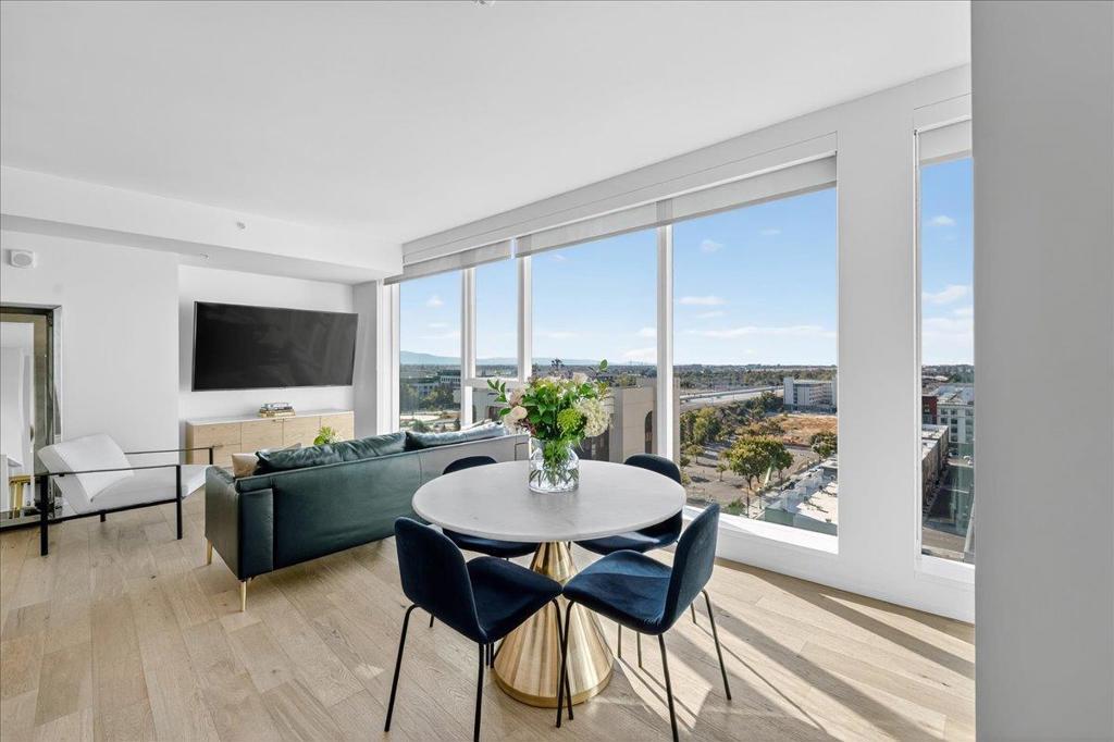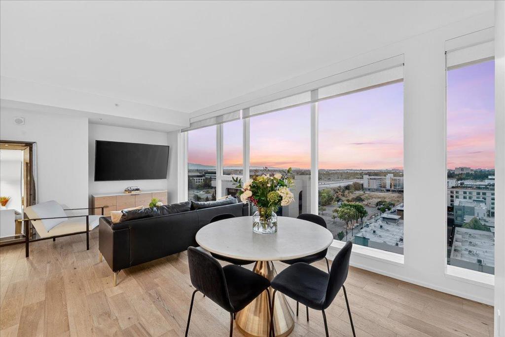 Elevate your lifestyle with this stunning 11th-floor 2-bed, 2-bath condo at the sought-after 188 West Saint James. Perched above the city, this home is filled with natural light and offers sweeping northwest views of treetops, rolling hills, and glowing sunsets. Enjoy a spacious, open-concept layout with wide-plank hardwood floors, a modern gas kitchen with quartz countertops, and premium stainless steel appliances. The primary suite features a walk-in closet and luxurious en-suite bath with dual vanities. A second bedroom and full bath offer flexibility for guests, a home office, or roommates. In-unit laundry, central A/C, and secure garage parking complete the home. Just steps to San Pedro Squares cafes, restaurants, and nightlife, and minutes to SAP Center, Adobe HQ, and SJC Airport. Commuting is easy with access to Caltrain, BART, and highways 87, 280, and 101. Enjoy resort-style amenities including a fitness center, lap pool, concierge, resident lounge, and more. Whether you're entertaining or unwinding, this home offers the perfect balance of luxury, comfort, and connectivity.