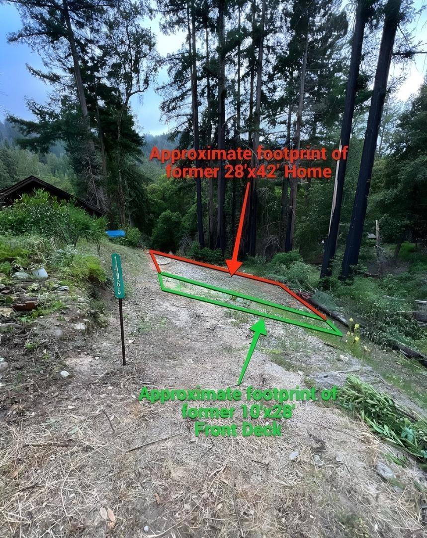 Build your dream home! Beautiful lot at the end of the road with lots of privacy. This lot features PG&E power and water hookup located at the property. Views of open space and beyond (from the former house site). Seasonal stream and waterfall. The former 1740 sq. ft. home was located on parcel #082-012-06 (0.225 Acres). Parcel #082-012-17 (0.294 Acres) is also included in the purchase price. A total of 0.519 Acres. Conveniently close to downtown Boulder Creek.