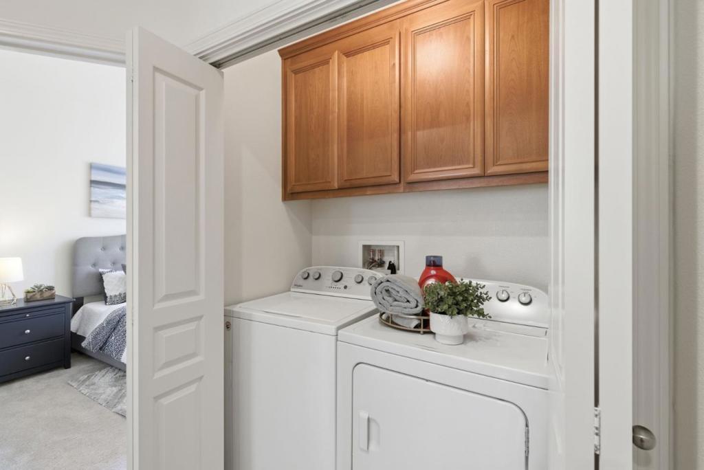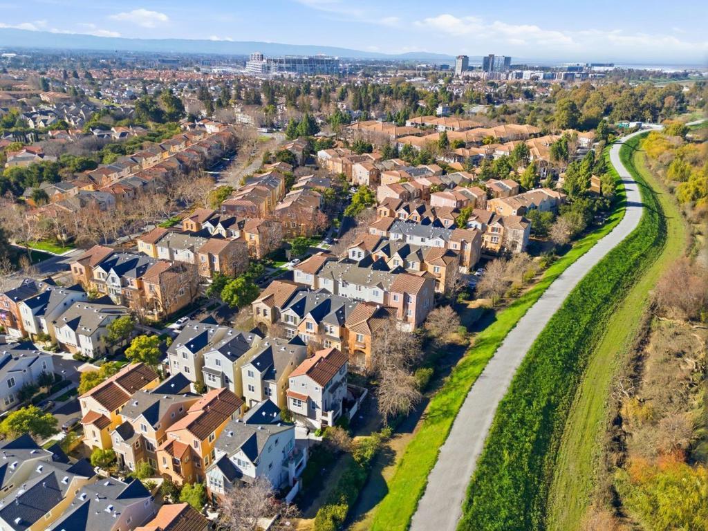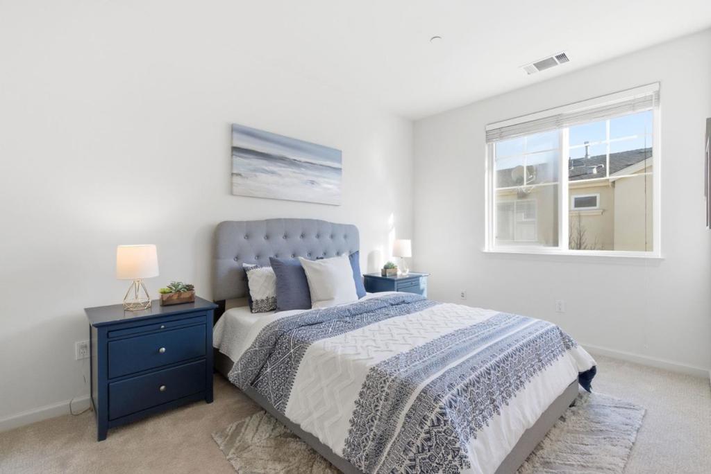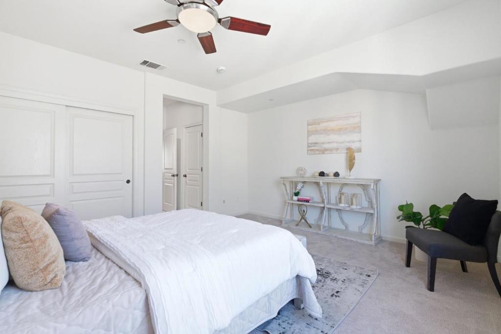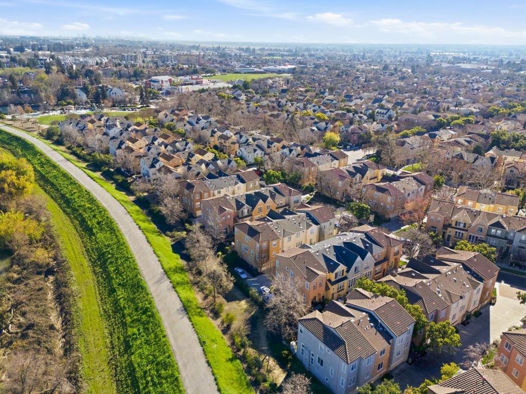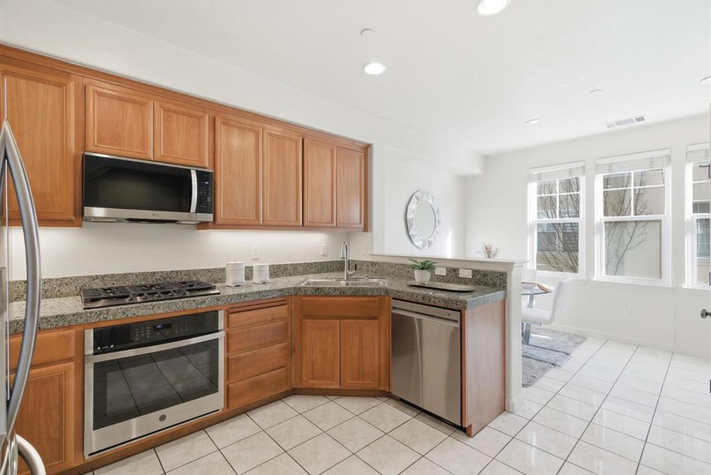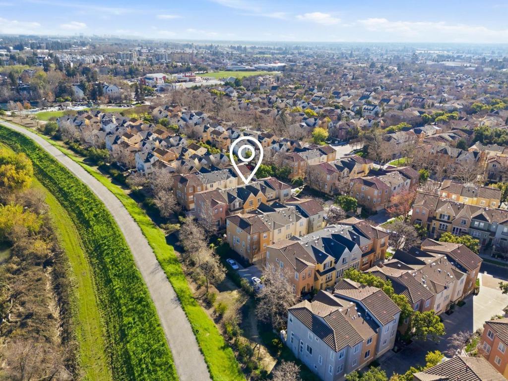 SUNNY, CENTRAL, & PRIVATE | Only steps away from Thamien Park and Guadalupe River Trail, this Park Plan I home in a private pocket of Rivermark offers a quiet blend of comfort and accessibility. High ceilings, substantial storage, and fresh paint enhance the interiors, while oversized windows are insulated for soundproofing and energy efficiency. Convenient tech upgrades include WiFi-enabled kitchen appliances and dual-zone Nest® climate control. Gather in the sun-lit living and dining areas, or enjoy a kitchen stylishly fitted with granite finishes, pantry, and a suite of stainless appliances, including a gas range. One of the two relaxing primary suites boasts dual vanities and dual closets. Additional amenities include a desk center, convenient upper laundry, premium carpet, two-car garage with EV charger, and more. Explore the cultivated wilderness of nearby Ulistac Natural Area while within blocks of Don Callejon School (K-8), the community pool, library, and shopping and dining at Rivermark Village. Also near Levis Stadium, Google, Apple, NVIDIA, and so much more!