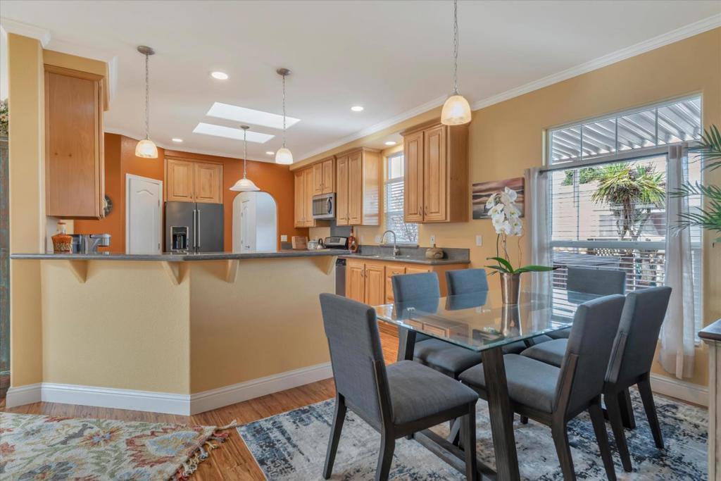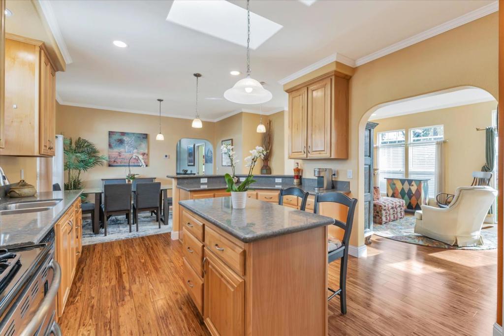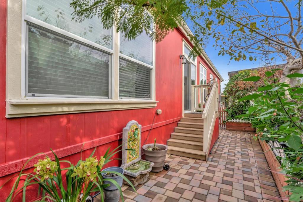 Forget everything you thought you knew about manufactured homes. This extra-large, custom-designed home immediately sets itself apart with generous square footage and thoughtfully chosen, high-quality finishes throughout. Flooded with natural light from skylights and vaulted ceilings, the interior feels open and airy. The chefs kitchen features high-end appliances, a large island, and beautiful granite and marble counters. Built-in bookshelves, woodgrain laminate flooring, and a fireplace add warmth and character. Sliding glass doors open to a lush, private garden. The front portion of the home includes two bedrooms, a custom bath, a separate living room, and two private entrances. An ideal set-up for extended household living or guests. Toward the rear, a spacious living room with fireplace, separate dining area, a wall of windows, and an expansive kitchen anchor the main living area. The primary suite features a walk-in closet and a luxurious bath with spa tub. Every inch reflects quality construction. Reports are clean.The home has been meticulously cared for. Alimur Park is a well-managed, resident-owned co-op community with a pool and charming clubhouse. All within walking distance to downtown Soquel, Capitola Village and Wharf, nearby beaches, and 41st Avenue shopping.
