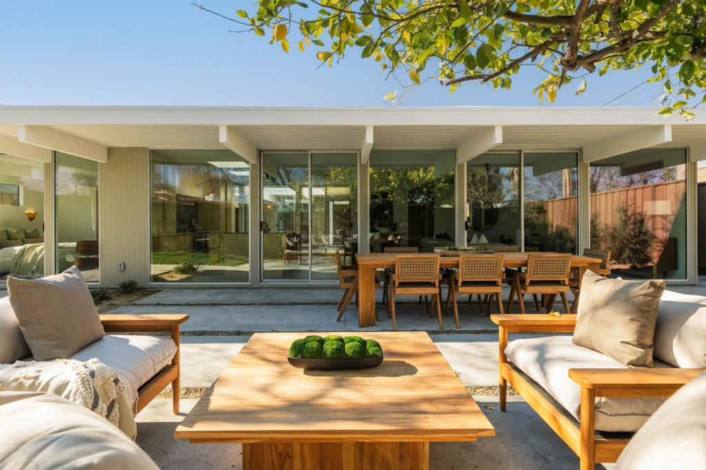 2256 Fairhill Lane is a rare Willow Glen offering, set within the highly regarded Fairglen enclave and rooted in the legacy of a true Eichler. Spanning approximately 1,755 SQFT, this 4 bedroom, 2.5 bath residence has been fully rebuilt and completely modernized, while honoring the architectural purity and cultural significance that define Eichler design. Taken down to the studs and reimagined from the inside out, the home features all new systems throughout, including plumbing, electrical, HVAC, roof, insulation, drywall, sewer and water lines, windows, doors, siding, surrounding hardscape and more. True to its Eichler heritage, walls of floor to ceiling glass surround the classic center atrium, allowing natural light to flood the interiors and creating a seamless connection. Thoughtful upgrades elevate everyday living, from Bosch appliances and custom white oak cabinetry and interior doors, to a smart five zone mini split HVAC system designed for comfort and efficiency. The home is discreetly future ready with pre wired fiber, Unifi hardwired cameras and access points, Nest Yale smart deadbolt, tankless water heater, 240V car charging, and smart irrigation system. The property is surrounded by a close knit community known for its block parties and genuine neighborly connection.