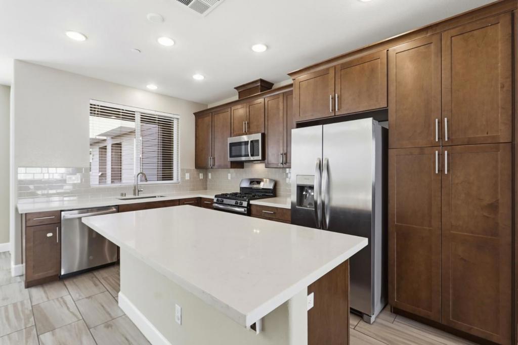 Welcome to 428 Whistler Place, an elegant three-bedroom, four-bath end-unit townhouse in the highly desirable Santa Teresa neighborhood of San Jose. Built in 2017, this contemporary residence offers 1,822 square feet of thoughtfully designed living space across three light-filled levels. Recent updates include fresh interior paint and newly installed carpet throughout, enhancing its move-in-ready appeal.Vaulted ceilings, hardwood-style flooring, and expansive dual-pane windows fill the home with natural light. The chefs kitchen features quartz countertops, a center island, stainless steel appliances, and ample cabinetry, ideal for both everyday living and entertaining.Enjoy a peaceful cup of tea on the front porch or unwind on the private deck. The lower-level den offers flexible space, perfect for a home office, study, or childrens play area. Two full baths and two half baths provide exceptional convenience. Additional amenities include in-unit laundry, central heating and air conditioning, and a two-car attached garage. Ideally located adjacent to a 10.6-acre park and within walking distance to Costco, Target, Safeway, and other major retailers, with low HOA dues, playground access, dog parks, and convenient commute routes.