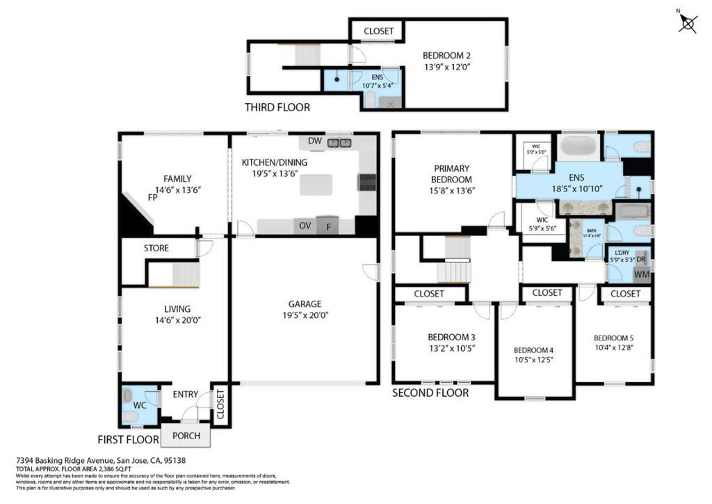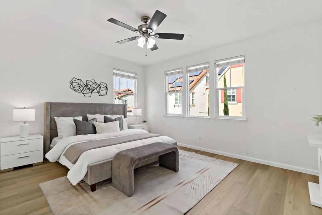 (BACK ON MARKET. Buyers backed out due to loan issues). 2006 BUILT HOME. NO HOA. BEAUTIFUL VIEWS. PAID SOLAR PANELS. 4 BEDROOMS ON THE 2ND FLOOR. 5TH ENSUITE BEDROOM ON THE 3RD FLOOR. BRAND-NEW FLOORING AND LIGHTS. UPSTAIRS LAUNDRY. NEAR TECH SHUTTLE STOPS. Super easy freeway access to 85, 101, and 87 saves you commute time. Walk to many parks, hike and bike trails at the famous Coyote Creek Trails. Just drive 5 minutes to Costco, Kaiser, Starbucks, ClubSport, Gold's Gym, Cal Train, Public Transport, Google and other TECH SHUTTLES, Jamba Juice, Grocery, Gas Stations, Charging Stations, Banks, Restaurants, etc. Very close to excellent and desired Rita Ledesma Elementary and Bernal Middle schools, Option to go to Santa Teresa High School. Basking Ridge is newer, beautiful, kid and family friendly community. Must visit to appreciate this aggressively listed home.