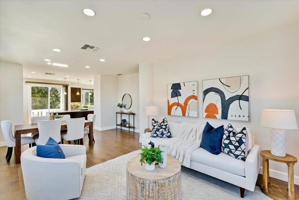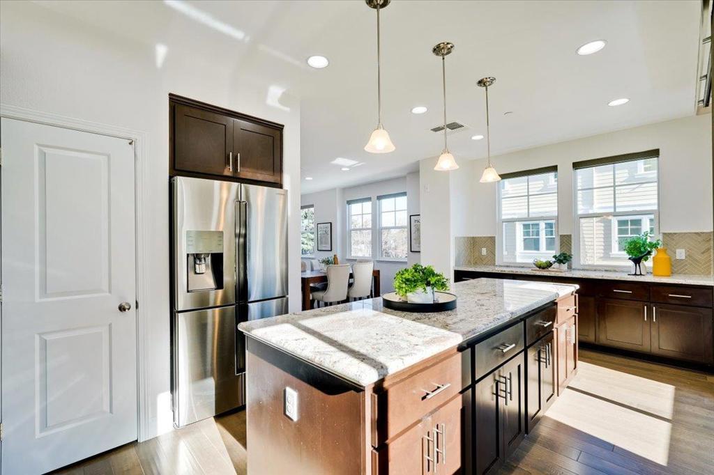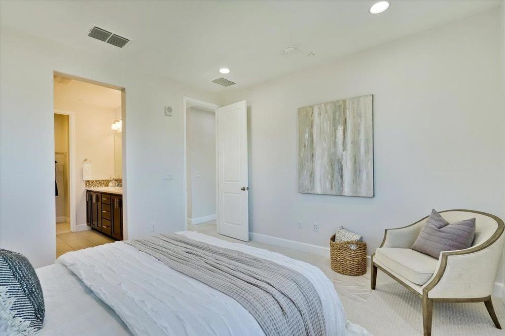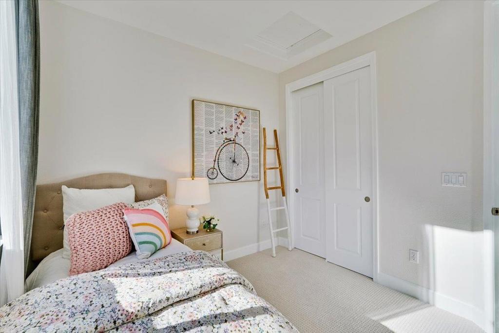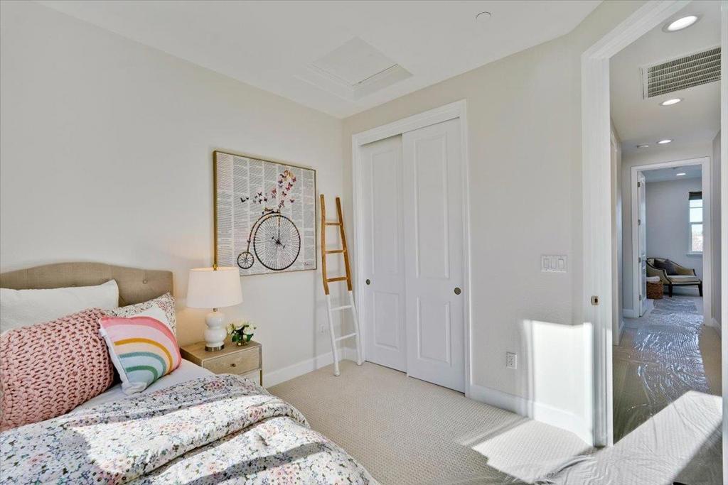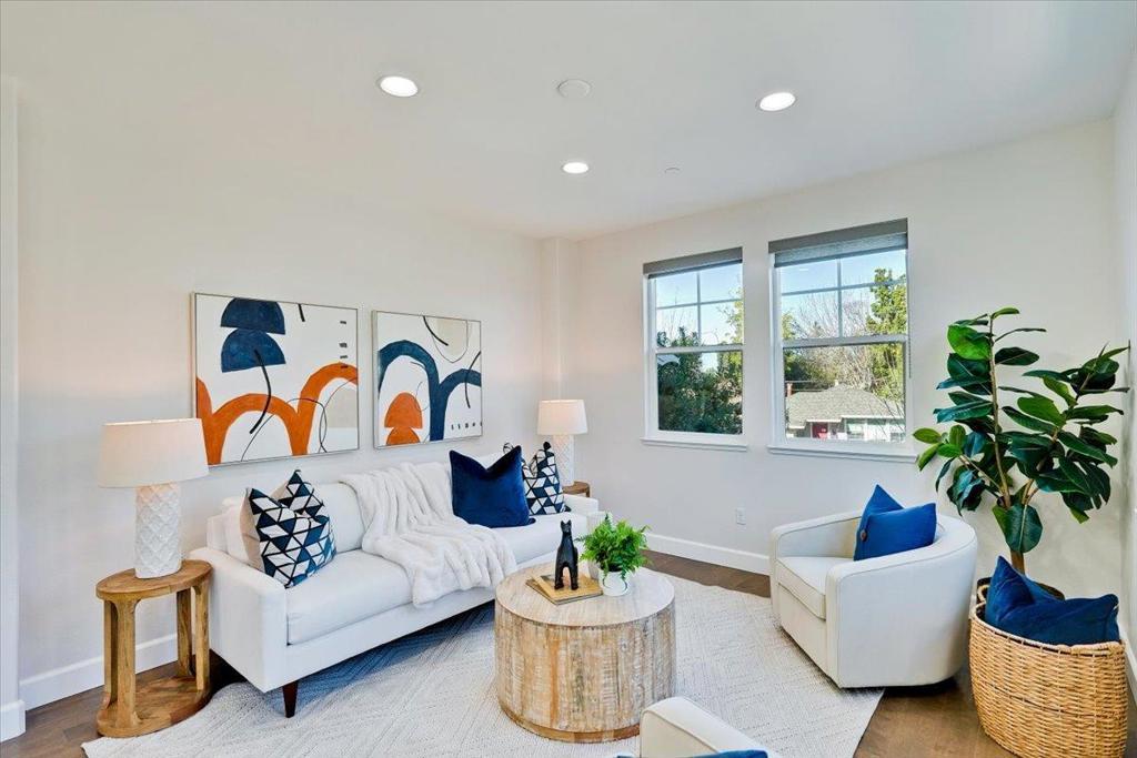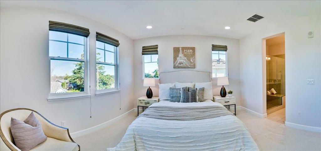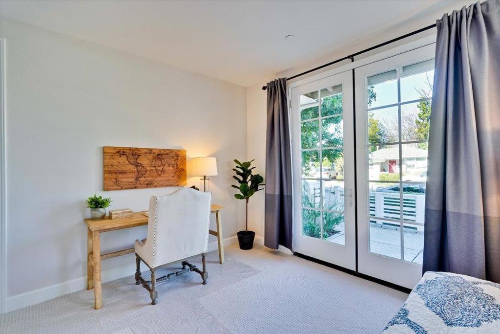Gorgeous Newer End Unit TH with Los Altos High. Beautiful, tree-lined setting cradles this spacious 4 bed, 3. 5 bath TH in the heart of Mountain View. Ground floor suite features a private bathroom and double French doors that open to a sunny courtyard, suggesting a more spacious and comfortable experience. Perfect for in-laws, guests, a home office, or rent it out for extra income. Gourmet chefs kitchen, wood cabinets, quartz counters, premium stainless-steel appliances with an oversized island. kitchen, dining and living room open concept great for entertaining guests. Primary bedroom suite with a walk-in Closet. Solar installed by HOA, Central AC, double pane windows, recessed lighting. Inside laundry/ Attached two- car garage. Walking distance to google campus through Permanente Creek Trail / 4 mins drive to Costco. Convenient to shopping, freeway access, and major techs