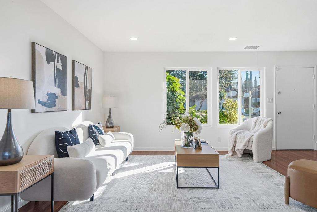 Zoned for Top Santa Teresa High School! Welcome to this beautifully updated townhome offering turnkey living in a quiet, well-maintained South San Jose community. Recently remodeled, it features a bright, functional layout filled with natural light. The spacious living room is highlighted by a large picture window overlooking the front courtyard, an inviting spot to unwind, host friends, or enjoy a cozy night in. Upstairs, the bedroom level and full bath create a comfortable separation between living and resting spaces. Double-pane windows and a sliding door provide energy efficiency. Step outside to your own enclosed backyard with a low-maintenance deck, perfect for weekend BBQs, morning coffee, and outdoor dining, with no lawn to mow. Enjoy the convenience of two covered carport parking spaces. The peaceful community offers mature landscaping and a great setting for evening strolls or dog walks. Everyday convenience is exceptional: stroll approx. 9 minutes to nearby shopping, coffee, restaurants, and a gym, or drive 57 minutes to Westfield Oakridge and Almaden Ranch for Target, Costco, Trader Joes, Whole Foods and Ranch 99. Commuters will appreciate proximity to VTA light rail and quick access to Hwy 85. Move-in ready and easy to love.