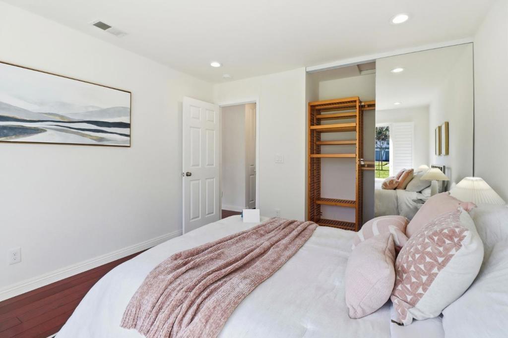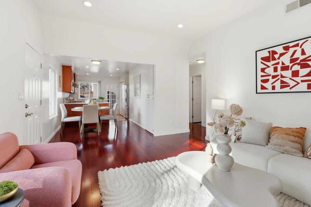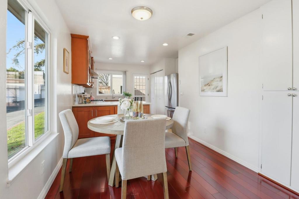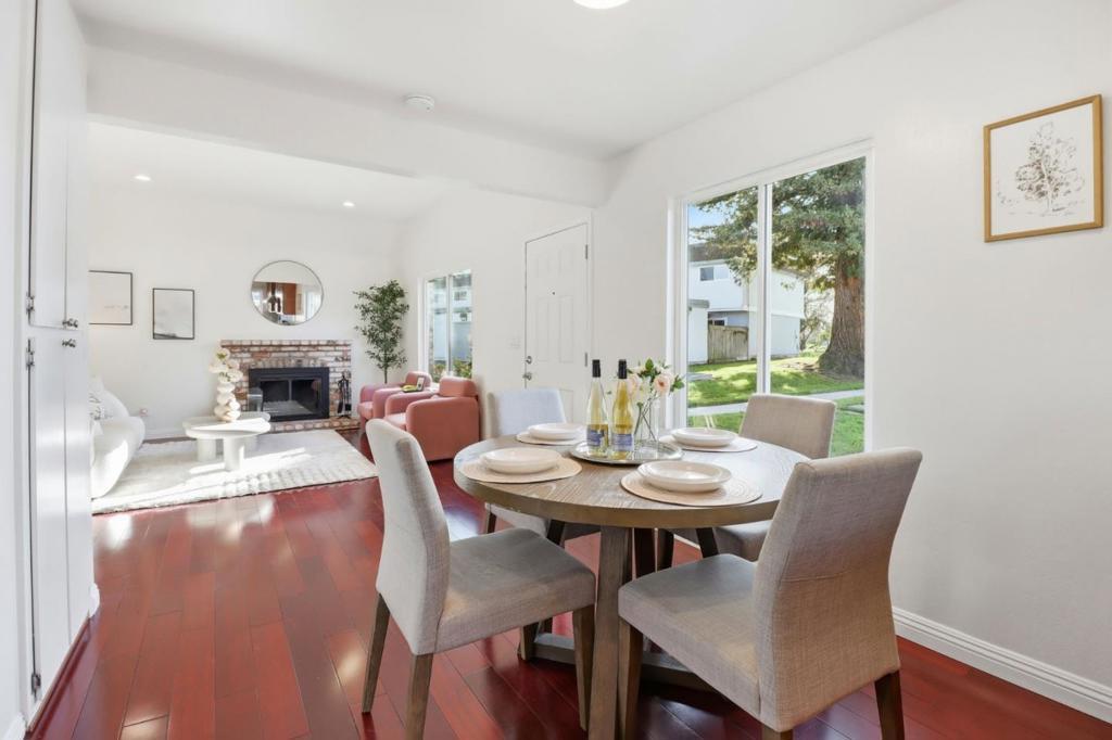 A True moving-in ready house with good value!! Located in a quiet North San Jose community, this move-in-ready end-unit townhome offers a single-level layout like a single-family home, abundant natural light, and an excellent Berryessa location with top-rated schools. The home features a fully updated kitchen with modern finishes, newer appliances, tile flooring, water filtration system, along with a remodeled bathroom. Brazilian cherry hardwood flooring in the living room, dining area, and bedrooms, plus central heating and cooling, indoor laundry, fresh interior paint, dual-pane windows, sealed garage, and newer garage door make this home truly move-in ready. Enjoy a private enclosed courtyard and direct access to a two-car attached garage with epoxy flooring, plus permitted guest parking. The family-friendly community offers a low HOA fee and amenities including a pool, playground, and clubhouse. HOA covers garbage, landscaping, roof, exterior, and common area maintenance. Within walking distance to Majestic Elementary School and close to parks, trails, Highway 680, Montague Expressway, VTA, Costco, shopping, and dining. An excellent opportunity for buyers seeking great schools, low-maintenance living, and long-term value in an established San Jose neighborhood.