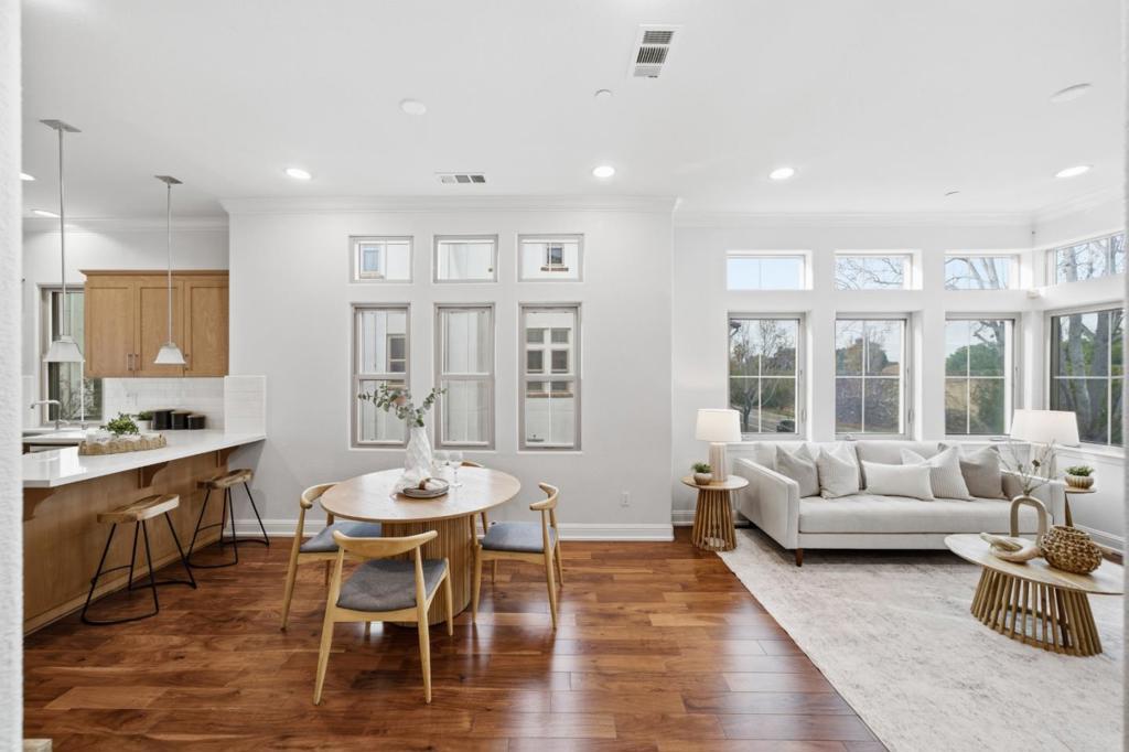 Luxurious and Charming 2 Suite End Unit Townhome in Mountain View w/ tons of natural light that shine in through extra windows on all levels. Located in the heart of Silicon Valley. Neighborhood Evandale Park, great for an evening stroll or birthday parties! Freshly painted, glowing hardwood floors, new carpets, tankless water heater, smart features throughout and more! Great Room concept making this home an entertains delight. Living and Dining Rm combo w/ easy access to the fully upgraded like new Kitchen. Full wall of windows on the main living level brighten up the entire floor. Gourmet Kitchen with top of line premium stainless steel apps, white quartz counters, high quality cabinets w/ amble storage and access to cozy balcony. Powder Rm on main level. Owner Suite located upstairs w/ extra windows, WIC and en-suite bath. Second Jr Suite with en-suite bath also located upstairs. Laundry area conveniently on Upper Level. 2 Car Garage w/ EV Charger. Located near major companies such as Google, Apple, Amazon, Nvidia and others! Minutes from downtown Mountain View w/ loads of dining, coffee and entertainment! Great Mountain View schools. Close to Stevens Creek Trail, Shoreline Park, major transportation via CalTrain, VTA and easy access up and down the Peninsula! Don't miss out!
