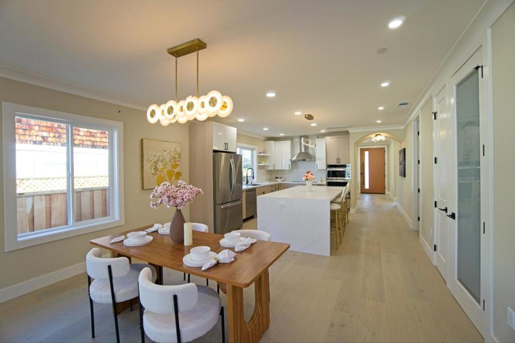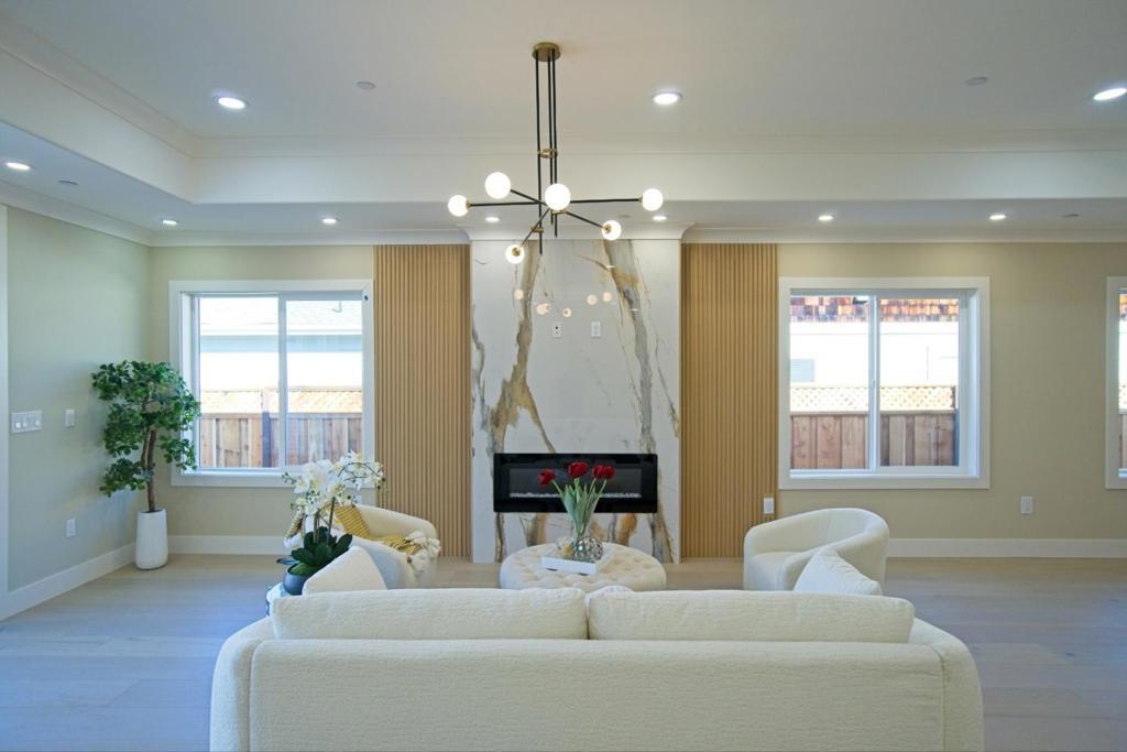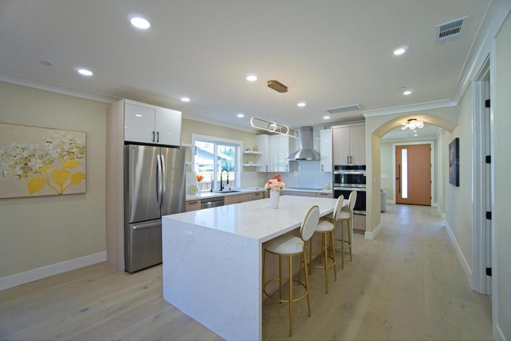 PERMITTED & CITY FINAL APPROVED ADDITION. Welcome to this stunning 4-bedroom, 3-bathroom ultra modern home located in the vibrant city of Santa Clara. With a spacious 2,570 sq ft layout, this home offers a comfortable and modern living experience. The kitchen is a culinary dream, featuring quartz countertops, an electric cooktop, built-in ovens, a convenient island, and 2 wine refrigerator, perfect for both everyday meals and entertaining guests. All 3 bathrooms feature a Japanese-style bidet and 2 can self-open. The home boasts elegant engineered wood flooring throughout, complementing the high ceilings (9-10 ft) and open spaces. Experience warmth and ambiance with the cozy fireplace, ideal for relaxing evenings. The house is equipped with central AC and forced air heating to ensure year-round comfort. Enjoy the convenience of inside laundry with both 110V and 220V hookups. Newly installed EV Level 2 outlets, catering to sustainable living. Located within the Santa Clara Unified School District, this home is also fitted with energy-efficient features such as double-pane windows and a tankless water heater. Don't miss the opportunity to own this exceptional home in Santa Clara.