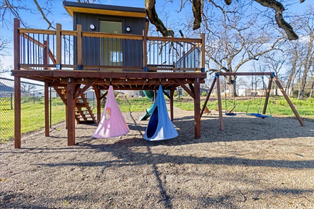 Luxury meets thoughtful design in this custom family home with 3-bedrooms, 3-baths, plus media room, built in 2023 by Northwest Custom Homes, ideally located in Palo Cedro Oaks on a quiet cul-de-sac with a private flag lot. This one-of-a-kind residence showcases beautiful architecture and high-end fixtures and finishes throughout. The custom-designed kitchen is a true showpiece, featuring Quartzite countertops, built-in, panel-ready appliances, complemented by a butler's pantry with a built-in pebble ice maker and dedicated water dispenser. The split floor plan offers exceptional privacy with two master suites, including a luxurious primary suite with an electric fireplace and a custom closet package. Additional highlights include Wi-Fi-enabled custom electronic window treatments throughout, dual A/C units, and two tankless water heaters. Oversized garage, 1443 sq ft, to accommodate multiple vehicles, toys, and storage. RV parking is large enough for multiple trailers, boats, or RV's. The property is family-friendly and outdoor-ready, featuring a custom tree house and a built-in trampoline. Owned solar and well make it easy and less expensive for property upkeep. The backyard has electric/water/sewer hookups for potential pool house or guest home.