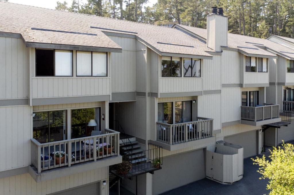 Wake up to sweeping views of the Pacific Ocean in this updated and rarely available Hacienda del Sol unit. The main level boasts new appliances and floors, a half-bathroom perfect for guests, and a sliding glass door out to a private balcony that overlooks the forested landscape and deep blue waters of our coveted Peninsula. You will find two oversized bedrooms upstairs, both with full ensuite bathrooms. The primary suite has ample space for lounging furniture, an entire wall of floor-to-ceiling sliding mirrors, and commanding views of the world below. Conveniently, the two car garage allows for plenty of excess storage without sacrificing the pleasure of private parking. Top-level units in Hacienda del Sol are rarely offered for sale, making them the most coveted units within the already desirable, owner-friendly community. The unbeatable location is just a short walk from Veterans Memorial Park and features easy access to Monterey, Pacific Grove, Pebble Beach, and Carmel. This move-in ready home offers the perfect blend of convenience, functionality, and luxury - a combination that rarely includes views like these. Come and live like the lucky few!