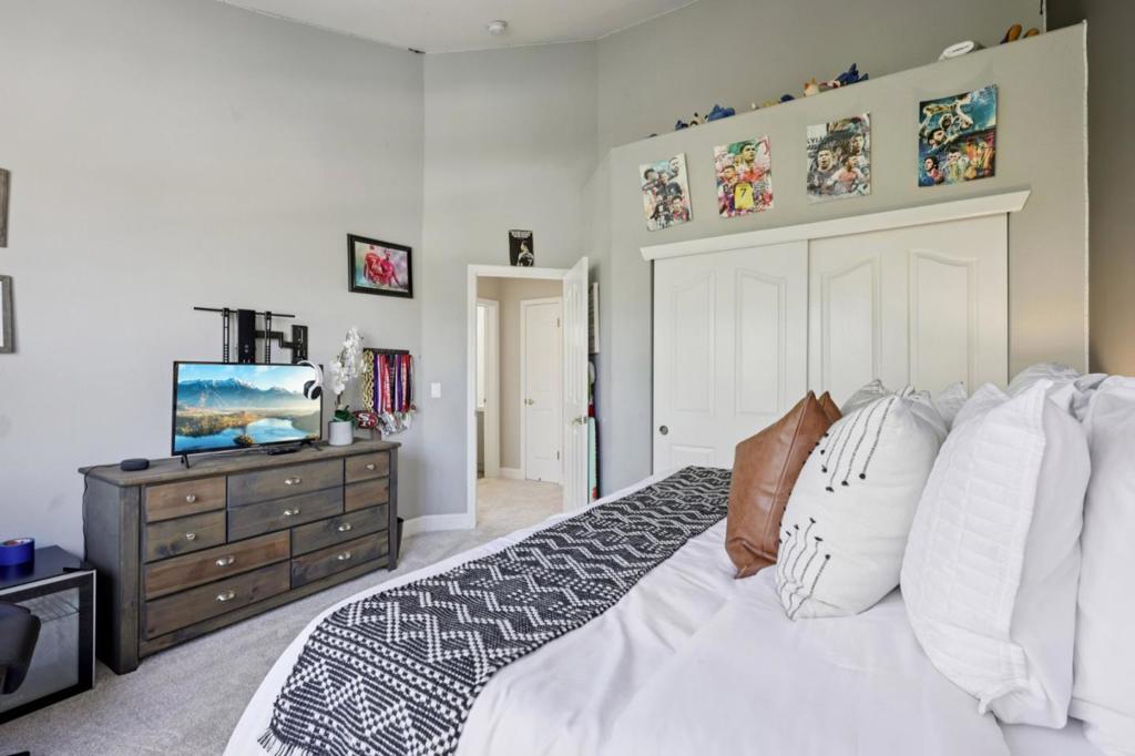 Located in the prestigious Hillstone community, this expansive home sits on an approx. 20,037 sq. ft lot & offers sweeping, unobstructed mountain & valley views from nearly every room. The approx. 4,447 sq ft floor plan features 5 bedrooms plus an office/theater room (optional 6th bedroom) & 4.5 baths. Freshly painted double doors open to an open-concept layout w/ 20-ft ceilings & hardwood floors. The main level includes an office area, open dining & living space, bonus room w/ projector, & a main-level en suite bedroom ideal for multigenerational living. The chefs kitchen features a walk-in pantry, refinished cabinetry & overlooks the family room. Upstairs, four spacious bedrooms include two more en suites & newly installed carpeting. The primary suite offers a sitting area w/ views, large walk-in closet, & huge spa-style bath w/ room to exercise. The resort-style backyard features unobstructed views, landscaped pathways, outdoor kitchen & bar, gazebos, seating area w/ fireplace, pool & spa, trampoline area, & private trail. Additional highlights: RV/boat parking & 4-car garage. Close to top schools, parks & commuter routes. Seller is Property optionee who will be redeeming the Property pursuant to court order using proceeds of sale and transferring it to new buyer.