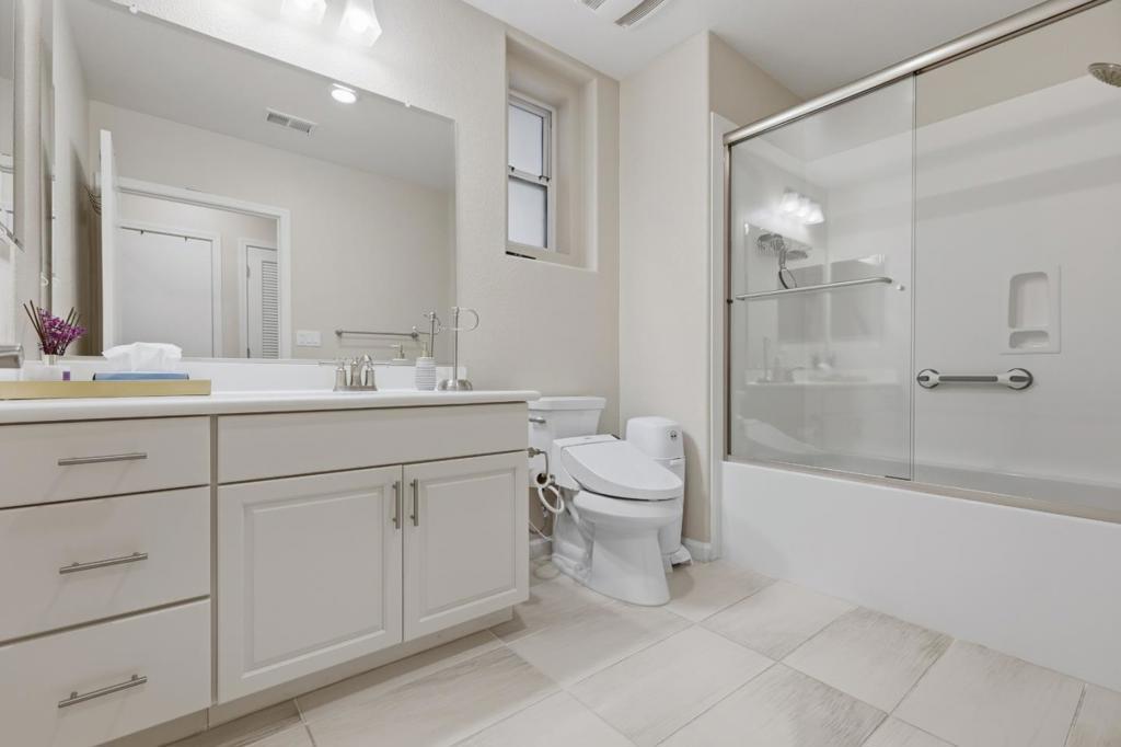 Nestled atop Communication Hills this vibrant community-centered neighborhood offers direct access to breathtaking 1.5-mile walking trails, delightful parks, and playgrounds. This exquisite home with stunning panoramic views, boasts an elevator, secure garage, and an inviting rooftop deck. Your brand-new abode features soaring 10-foot ceilings and a generously open floor plan. The open-concept design, awash in natural light, showcases a designer kitchen complete with an island, granite counters, abundant cabinetry, modern, energy-efficient appliances. The living room area extends gracefully to your private balcony or deck. The master bedroom is a sanctuary with a spacious walk-in closet and adjoining bath. Each generously sized bedroom comes with a walk-in closet for ample storage, while the elegantly updated bathrooms infuse modern style throughout the home. For added convenience, enjoy the in-unit washer and dryer, as well as Tandem 2 car garage with Tesla Charger and additional storage racks. Sky View Terrace is a beautifully designed shared space featuring seating areas, a BBQ, and breathtaking panoramic views of the foothills making this an ideal setting for a touch of leisure and relaxation.