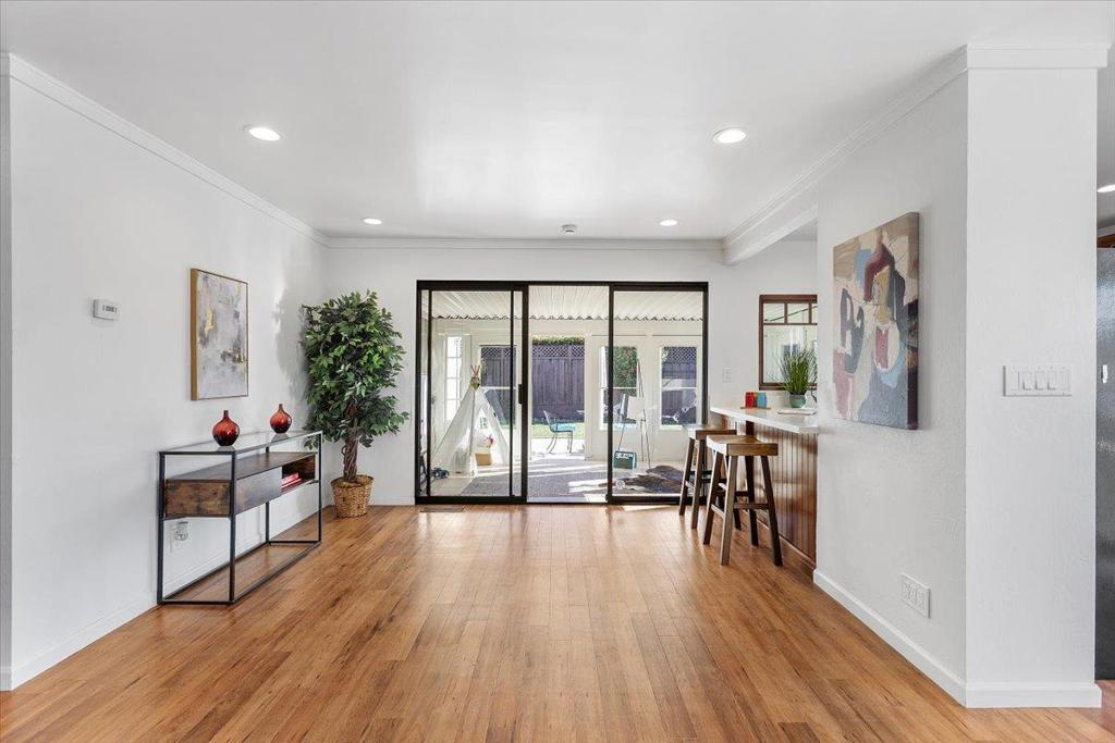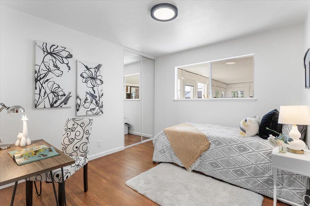 Rare opportunity to own an absolute gem in the Berryessa neighborhood. This corner lot with 4 bedrooms and 2 bathrooms has been beautifully updated. Newly finished hardwood floors, recess lighting, and new fixtures. Open concept floor plan and kitchen with stainless steel appliances and gas stove. Owned solars! New garage door and opener, and newly epoxied garage floor. Updated bathrooms with brand new toilets and new fixtures. The house is move in ready! The lot is charmingly landscaped and provides an excellent balance of indoor and outdoor living. And what a location -- walk out to right and enjoy views of the Berryessa hills, walk to the left one block and you have access to Penitencia creek trail and walking path. Super convenient for schools, shopping, light rail, and freeway access. Finally, the piece de resistance -- an amazing sun room with ample sunlight. It's perfect for morning coffee, children play area, or simply enjoying your private retreat.