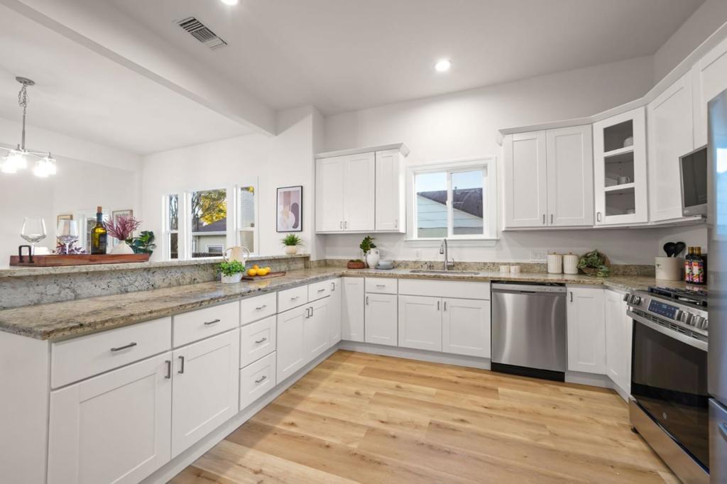 Exquisitely updated home in the heart of Downtown San Jose! This open and spacious floor plan features soaring 12-foot ceilings and offers 3 bedrooms and 2 full bathrooms, plus a basement ADU with 2 bedrooms and 1 bathroom. Ideal for extended family or rental income. Recent upgrades include freshly painted interior and exterior, brand new vinyl flooring throughout, freshly painted kitchen cabinets, newer granite countertops, and brand new stainless steel appliances including a gas range, microwave hood, and dishwasher. Bathrooms have been recently remodeled with tile walls and flooring, new vanities, and updated fixtures. Situated on a generous R2-zoned lot, the property features a side driveway that extends through the lot, providing ample parking for multiple or oversized vehicles. The placement of the existing home allows for a sizable backyard with endless potential. Add a garage, detached ADU, or expand the main residence. Unbeatable central location just minutes from SJSU, Spartan Stadium, Tech CU Arena, SAP Center, and a wide variety of dining, shopping, and entertainment. Quick access to major freeways make any commute quick and easy.