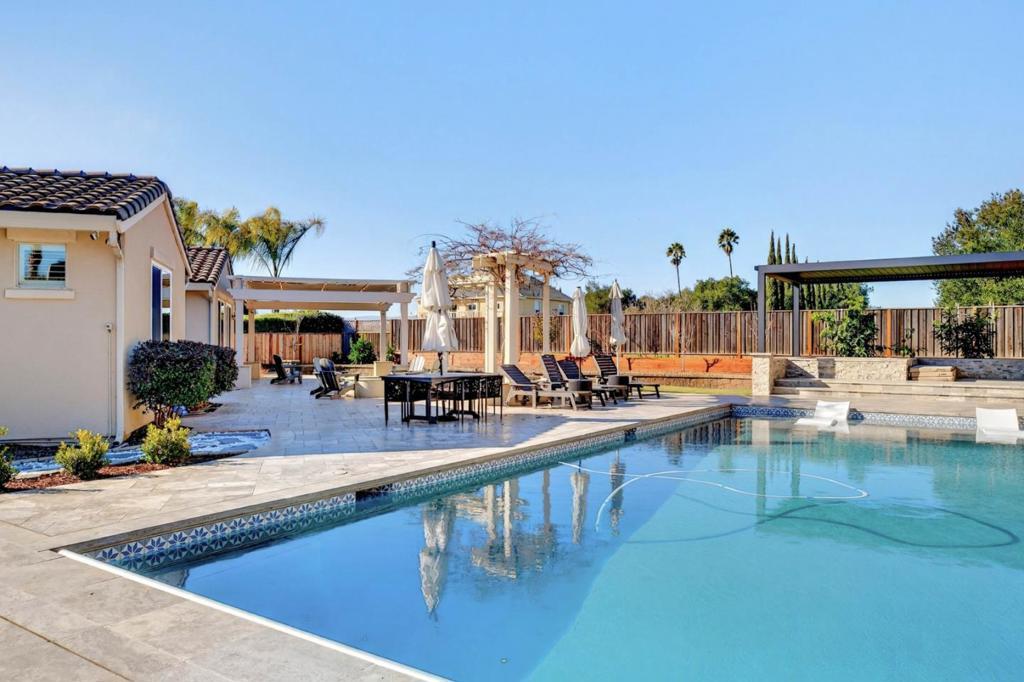 Welcome to 1655 Martinez Way, a stunning residence newly built in 2014 that offers a perfect blend of comfort and style. With 4 bedrooms plus an office, and 2.5 bathrooms spread across 2,809 square feet of living space, this home is perfectly suited for both relaxation and entertainment. Every corner of this home radiates elegance and comfort, from the inviting living area adorned with a cozy fireplace and a separate family room that is perfect for family gatherings. The thoughtfully designed kitchen features an island, stainless steel appliances, and gas cooktop that cater to both casual meals and culinary endeavors. The spacious primary suite features a luxurious bathroom with a separate soaking tub and shower, dual vanities, and a walk-in closet complete with a custom organization system. The private backyard oasis features a sparkling pool, a louvered pergola housing a relaxing hot tub, vegetable and rose gardens, gas fireplace, children's play structure, and a large variety of fruit and citrus trees. Whether you're hosting a summer barbecue or enjoying a peaceful afternoon, this outdoor space offers endless possibilities. Additional features include garage space for three cars, tile and hardwood flooring, owned solar panels, and air conditioning for the warm summer months.