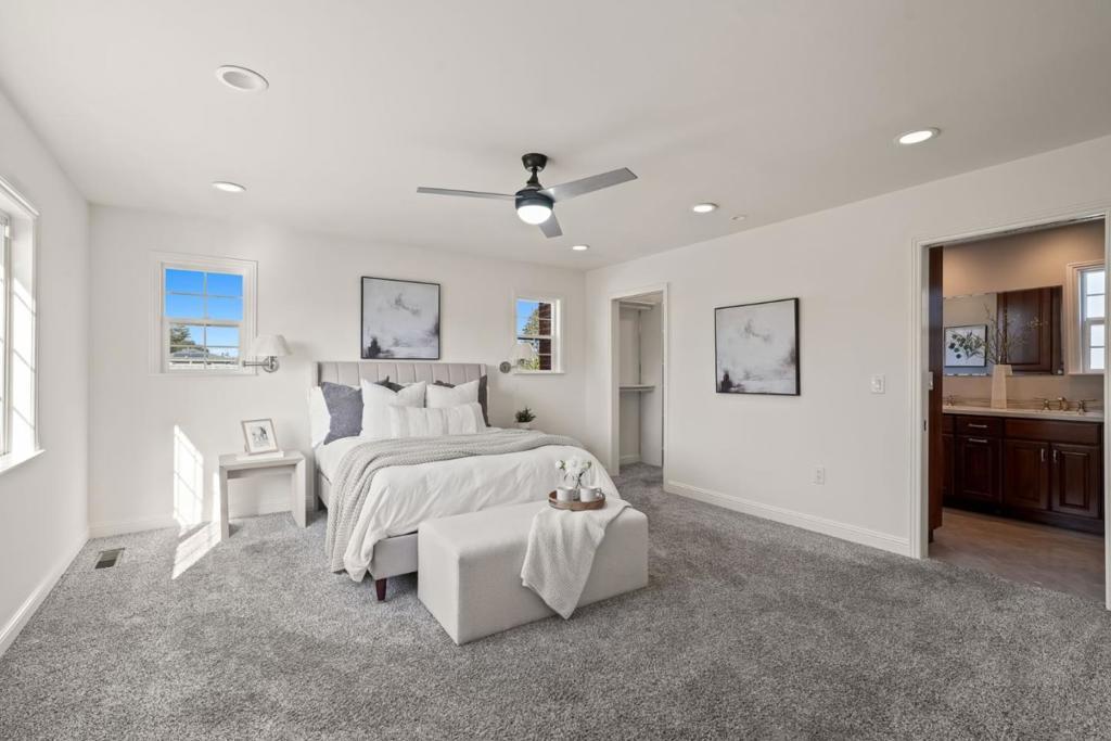 Recently upgraded, this San Mateo home is move-in ready with 4 bedrooms and 3 baths plus an attached bonus space/ADU with additional bedroom, bathroom and kitchen offering maximum flexibility and room for extended family or rental income. Cozy living room with hardwood flooring and fireplace flows to breakfast nook and updated chefs kitchen with ample storage. Flexible floor plan includes a downstairs bedroom with patio access, ideal for guests, office, or multi-generational living. Upstairs offers 2 spacious bedrooms with hall bath, plus a private split-level primary suite with walk-in closet and en-suite bathroom featuring dual sinks and soaking tub. Oversized ADU with full bathroom, kitchen, washer/dryer hookups and private entrance great for extended family or added flexibility. Private backyard with lawn and orange/lemon trees, perfect for entertaining. Attached 1-car garage. Convenient access to Downtown San Mateo and Hwy 92 for easy Peninsula commuting.