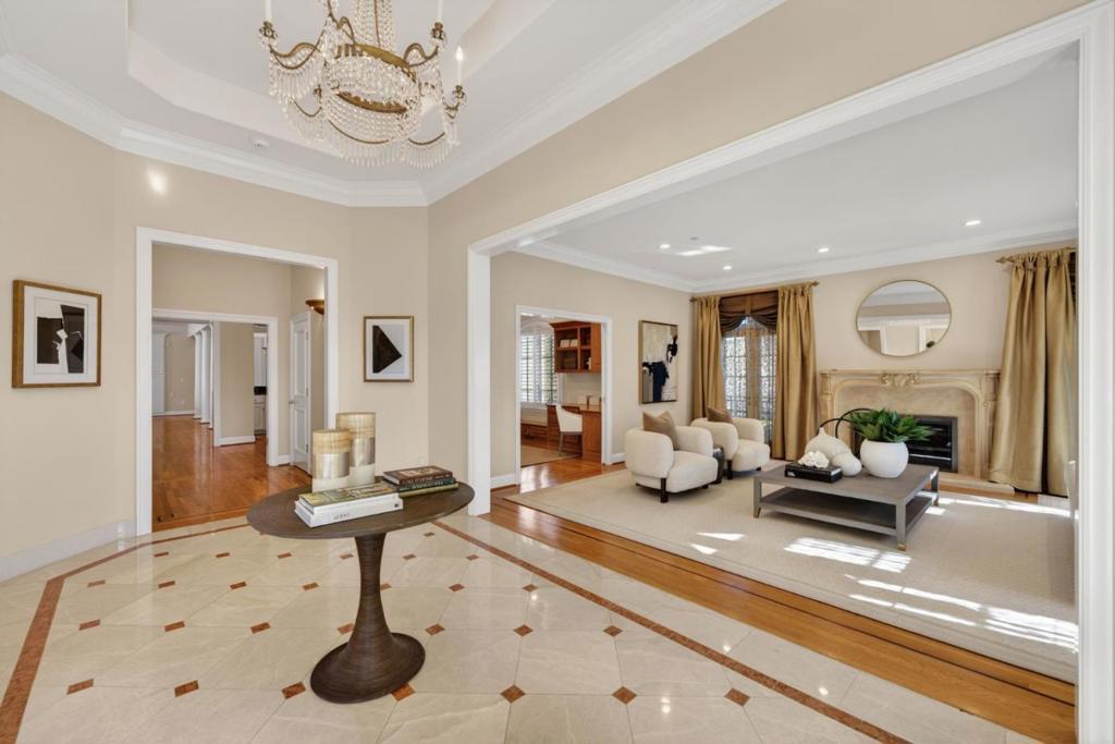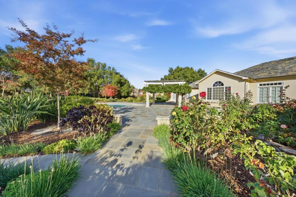 Set on an expansive, flat, over one-acre parcel in Saratoga, this custom residence commands attention with its impressive curb appeal and sense of grandeur. Upon entry, soaring ceilings, skylights, extensive millwork, and elegant proportions define the interior, highlighted by a grand formal living room anchored by a statement fireplace. A formal dining room offers an ideal setting for hosting special occasions, while a dedicated office provides a quiet and sophisticated workspace. Designed for both everyday living and elevated entertaining, the open-concept kitchen flows seamlessly into the family room and adjacent bar area, creating a warm and inviting gathering space. The home offers four spacious bedroom suites and five and a half well-appointed bathrooms, ensuring comfort and privacy throughout. Outdoors, an estate-like backyard unfolds with a sparkling pool, relaxing hot tub, fire pit, and a curated selection of mature fruit trees offering fresh pomegranates, Fuji apples, and cherries. Energy-efficient features include an owned solar system and an EV charger, enhancing sustainability without compromising luxury. Perfectly situated in a premier Saratoga location, the home offers close proximity to local conveniences and access to highly acclaimed Saratoga schools.