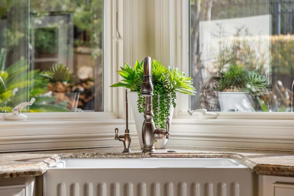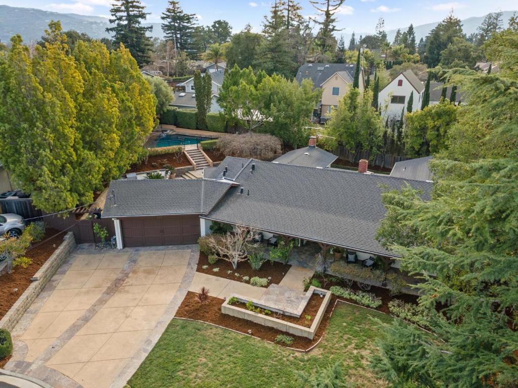 Elegant Spanish style single story home in a quiet cul-de-sac location! Inviting front porch entry opens to a spacious interior. Vaulted ceilings, dark stained hardwood floors and generous living spaces overlook the rear garden. Enjoy the spacious living room with handsome fireplace. Adjacent French doors open to the executive office or dining room. The kitchen will please any home chef with professional grade appliances and lovely painted cabinetry with gorgeous granite counters, a generous eating area with access to the rear yard. A family room sits just beyond with vaulted ceiling with patio access. All four bedrooms sit along the hallway and the private primary suite is a true retreat with views of the rear garden. Luxurious baths with top of the line finishes. The oversized lot has beautiful landscaping and the rear yard enjoys resort style amenities including a large patio entertaining area with a plumbed firepit to enjoy on a cool evening. Large outdoor kitchen with spacious bar height seating for dining al fresco. The beautiful pool sits above separated with an attractive iron fence with the hills beyond. A fenced lawn area and additional patio area is located outside the primary suite. Top Los Gatos schools and convenient location with close proximity to HWYs 85 & 880.
