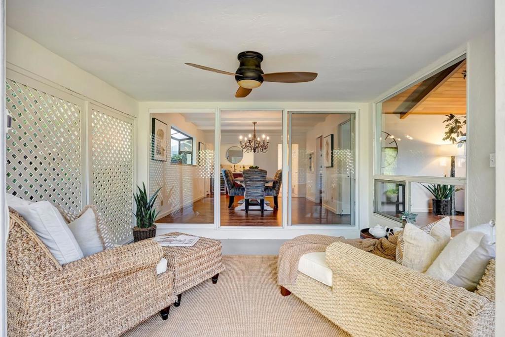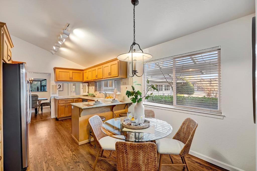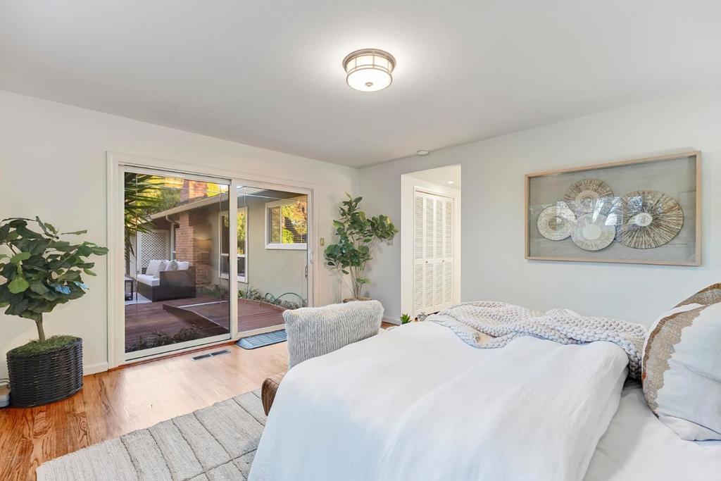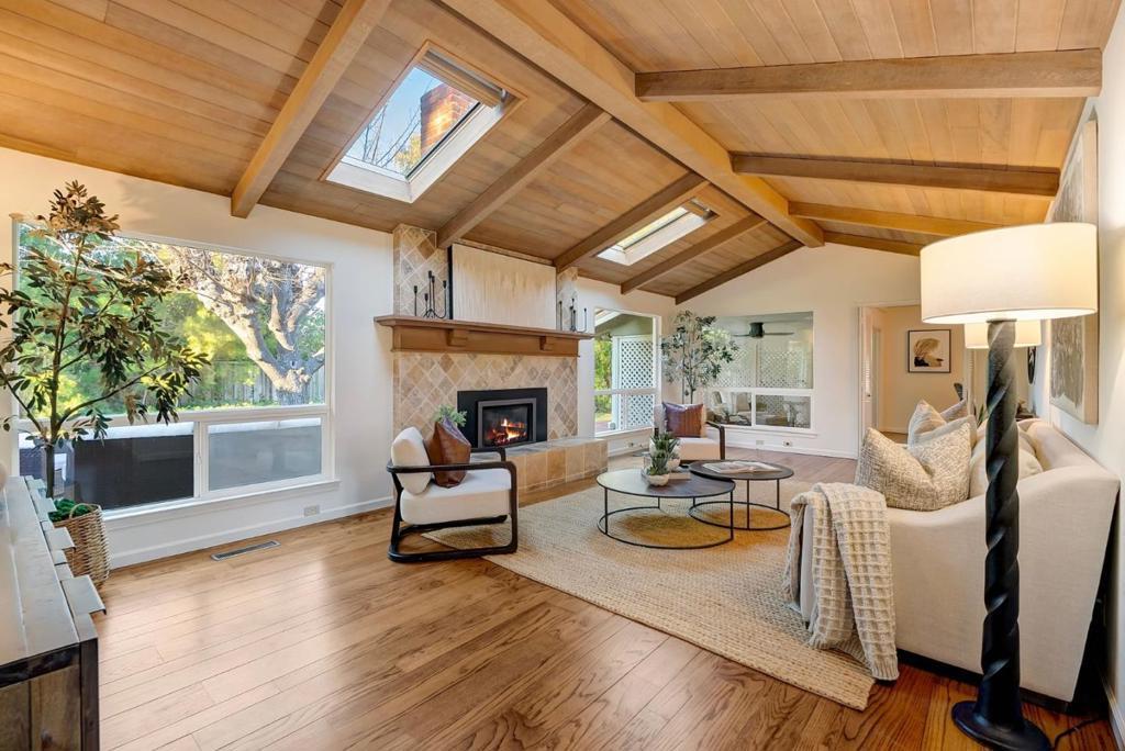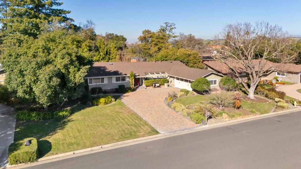 On a 1/4 acre lot, in the heart of the highly sought-after Almaden Country Club neighborhood. This gorgeous home blends charm, and comfort. Decorative paver-lined driveway and into a formal entryway with gleaming hardwood floors. Enjoy the gourmet kitchen complete with a vaulted ceiling, granite countertops, a breakfast bar, built-in wet bar with a wine refrigerator, sliding doors lead you to a covered patio and a private side yard. The formal living room is bathed in natural light, thanks to skylights and three oversized picture windows that frame serene backyard views. 4 spacious bedrooms, the primary suite is a true retreat, offering a large slider to a backyard deck, deep closets with built-ins, and an en-suite bath with a dual vanity and walk-in shower. Outside, the meticulously landscaped backyard is a private oasis. A sprawling lawn, mature greenery, and a spacious deck create the perfect setting for outdoor gatherings, morning coffee, or simply unwinding in the fresh air. Additional highlights include central AC, a dedicated laundry room with washer and dryer, a half bath, and a two-car garage with a workbench. Located just moments from top-rated schools, Simonds Elementary, Castillero Middle and Leland High as well as scenic hiking trails, and shopping and dining.