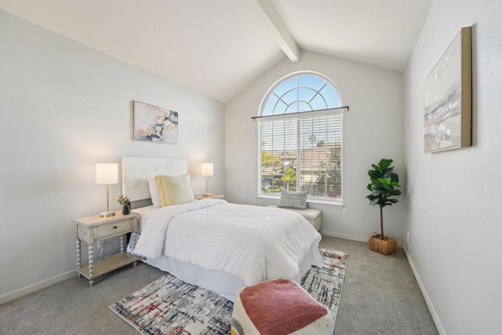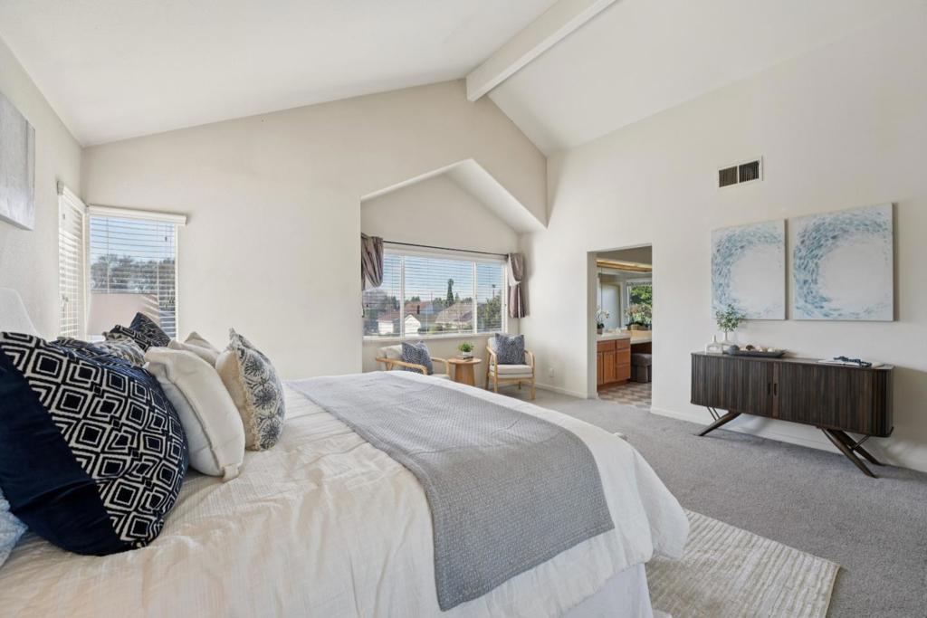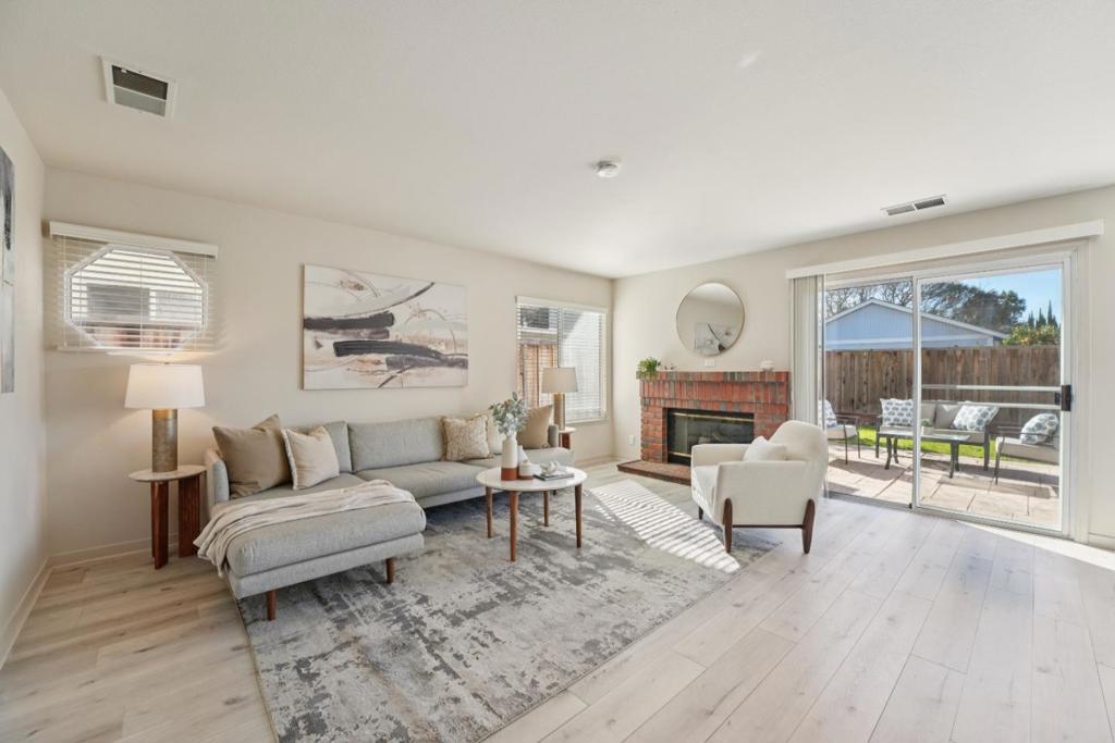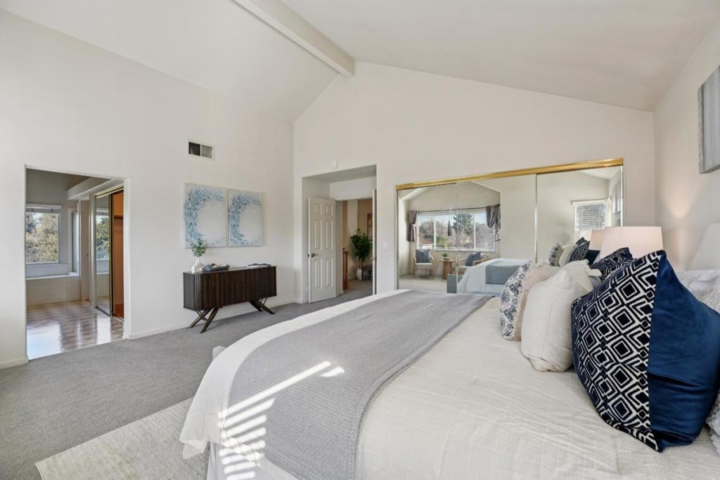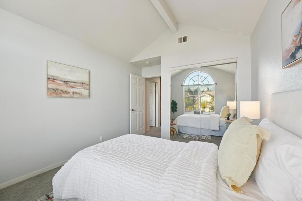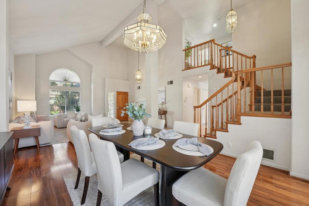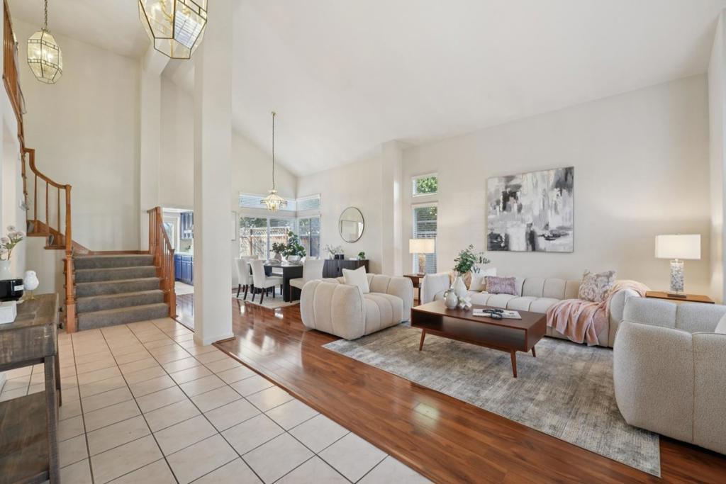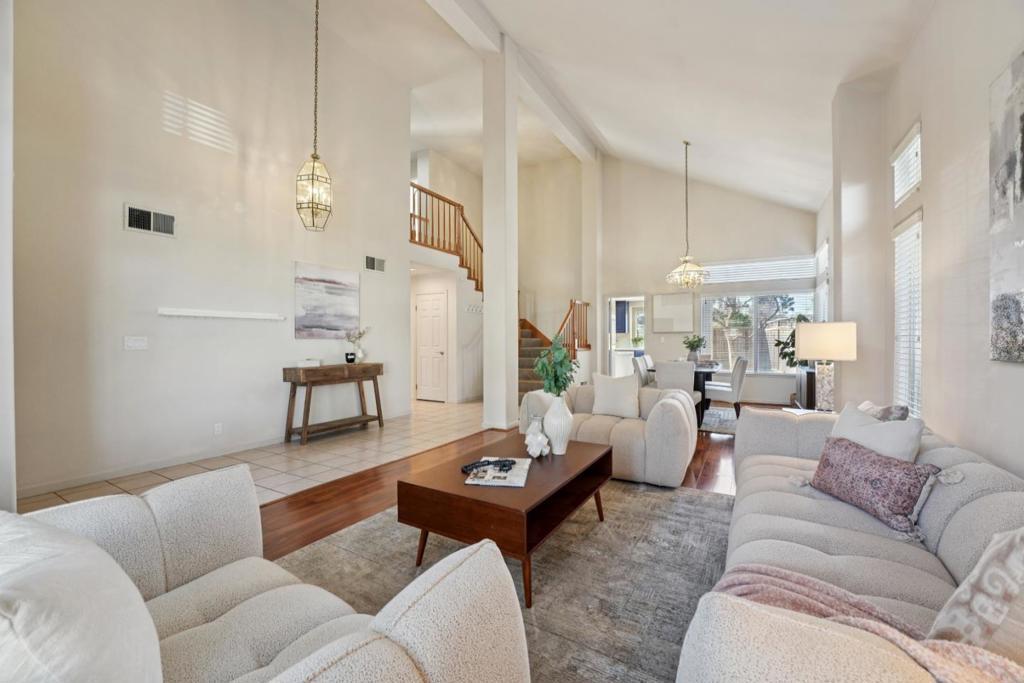 Welcome to this expansive 4-bedroom, 2.5-bath single-family home located in the highly desirable Flickinger South neighborhood of San Jose. Upon entry, you're greeted by dramatic 20-foot ceilings, hardwood flooring in the living areas, and newly installed luxury vinyl plank flooring in the kitchen and family room. The upper level is fully carpeted, and all bedrooms feature mirrored closet doors. Additional highlights include dual-pane windows throughout, a convenient half bath on the main level, a dedicated laundry room with a high-capacity washer and dryer, central heating and air conditioning, and an attached two-car garage. The low-maintenance backyard is designed for water efficiency and features a mature persimmon tree. The spacious kitchen opens seamlessly to the family room and is enhanced with newly installed or refinished cabinetry, a glass-top cooktop, double wall ovens, a stainless steel dishwasher, a stainless steel refrigerator, and generous counter space with ample storage. The primary suite is a private retreat offering vaulted cathedral ceilings, a standard closet plus a large walk-in closet with mirrored doors, dual vanities, a relaxing jacuzzi tub, and a separate stall shower.