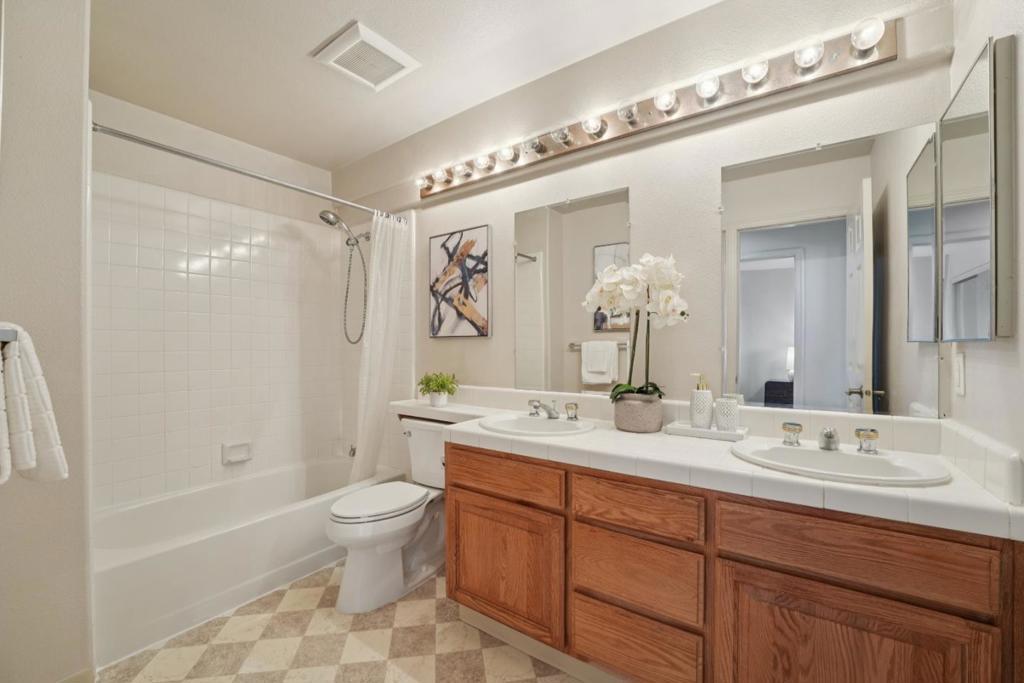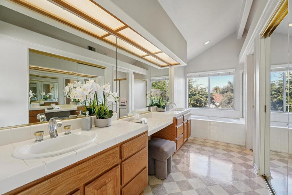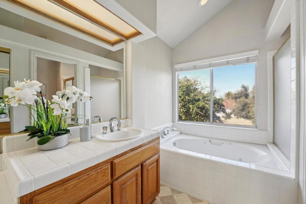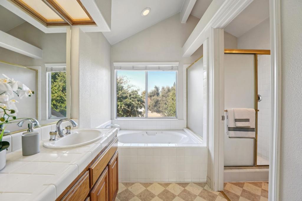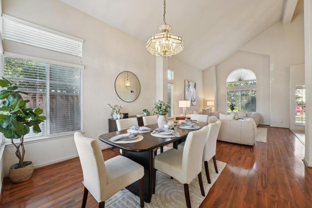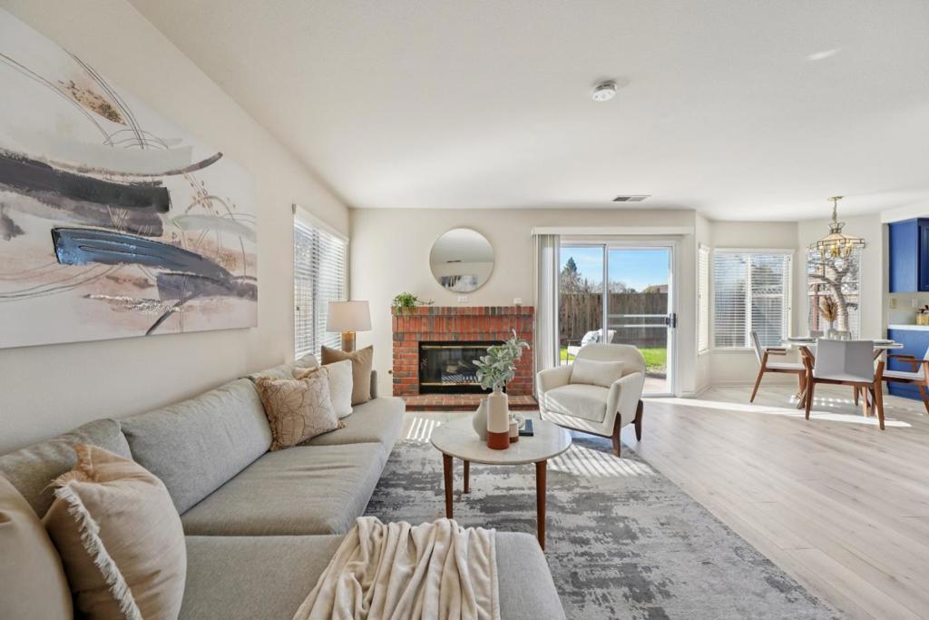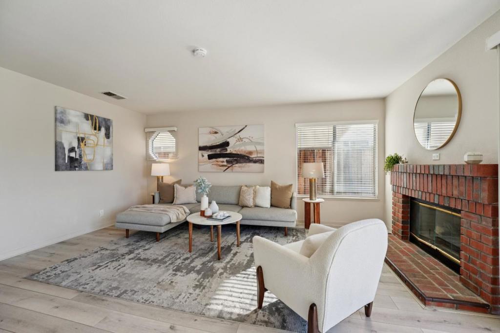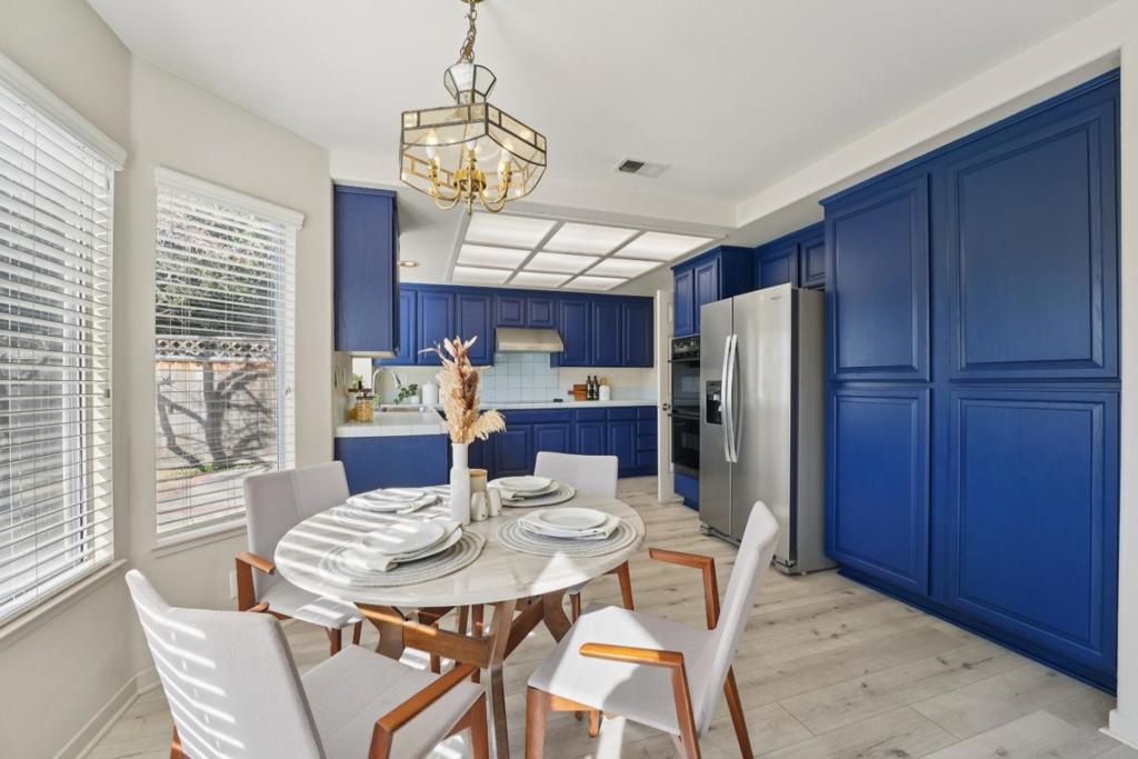 Welcome to this expansive 4-bedroom, 2.5-bath single-family home located in the highly desirable Flickinger South neighborhood of San Jose. Upon entry, you're greeted by dramatic 20-foot ceilings, hardwood flooring in the living areas, and newly installed luxury vinyl plank flooring in the kitchen and family room. The upper level is fully carpeted, and all bedrooms feature mirrored closet doors. Additional highlights include dual-pane windows throughout, a convenient half bath on the main level, a dedicated laundry room with a high-capacity washer and dryer, central heating and air conditioning, and an attached two-car garage. The low-maintenance backyard is designed for water efficiency and features a mature persimmon tree. The spacious kitchen opens seamlessly to the family room and is enhanced with newly installed or refinished cabinetry, a glass-top cooktop, double wall ovens, a stainless steel dishwasher, a stainless steel refrigerator, and generous counter space with ample storage. The primary suite is a private retreat offering vaulted cathedral ceilings, a standard closet plus a large walk-in closet with mirrored doors, dual vanities, a relaxing jacuzzi tub, and a separate stall shower.