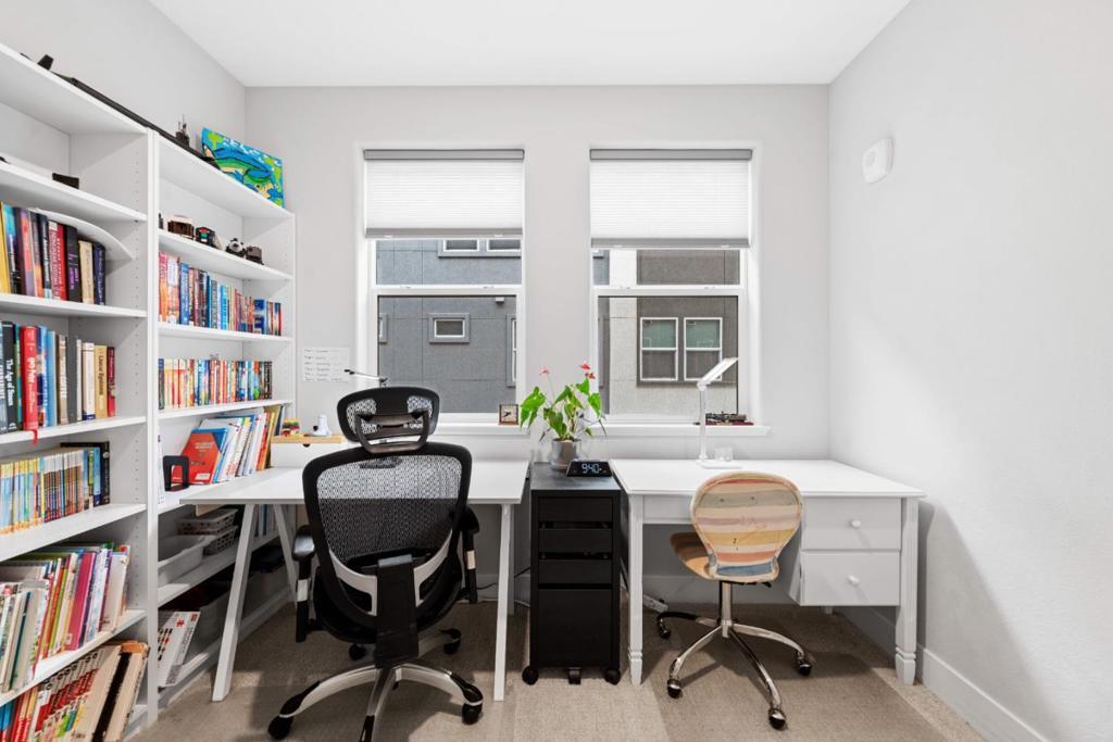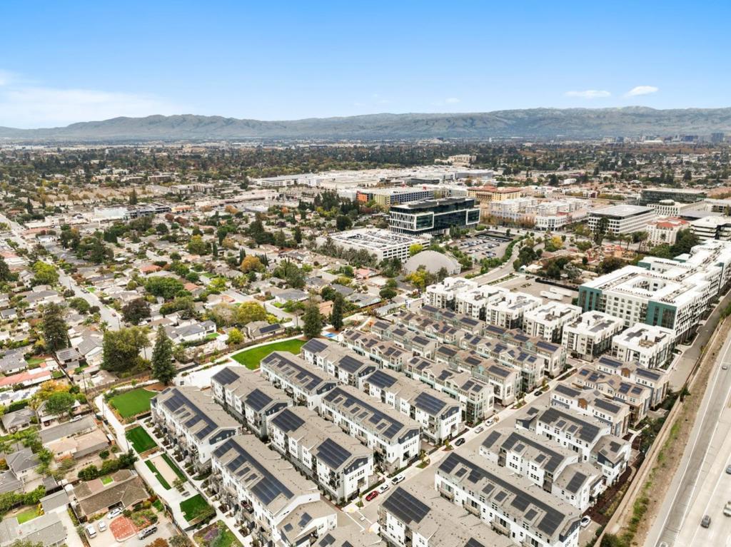 Welcome to this stunning 3-bedroom, 2.5-bathroom, 2-level end-unit townhouse-style condo built in 2022. Soaring high ceilings and recessed lighting flow throughout the second-floor living area, where the open-concept layout seamlessly unites the living room and kitchen. The kitchen features a large island and stainless-steel appliances, perfect for daily living and entertaining. The master suite is a true retreat, boasting abundant natural light, a spacious bathroom with dual sinks and a shower, a balcony, and a generous walk-in closet. Each bedroom has its own thermostat for personalized comfort, and the end-unit location brings extra sunlight into every room. On the first floor, you'll find a large half bathroom and a flexible room ideal for an office or additional storage. Highlights include central A/C, leased solar panels, a modest HOA fee, an attached 1-car garage with EV charger, and access to a community playground. Located in San Jose's vibrant 95117 neighborhood, this home is just across the street from Santana Row with luxury boutiques and award-winning restaurants, near Valley Fair Mall, and offers convenient access to Highways 17, 280, and 880. You are also minutes from major tech employers, making it an ideal combination of comfort, convenience, and lifestyle.