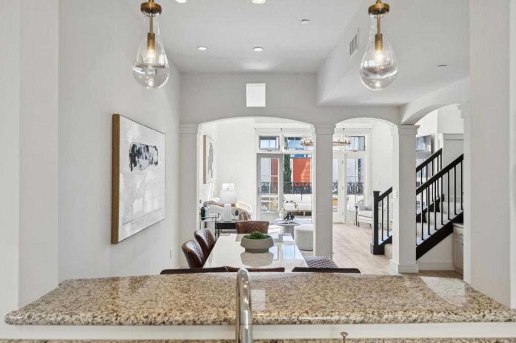 Welcome to luxury living at its finest in the heart of vibrant Santana Row. This spacious 2,368 sq. ft. condo offers 3 bedrooms, 3.5 bathrooms. This property features a flexible use room on the top floor, multiple screens installed, full wet bar, fridge, dishwasher and ice maker, perfect for entertaining, Game day, or media screening room. Down a European style outdoor corridor, behind a wooden gate, you arrive at the first of two private outdoor spaces. The back patio off the living room is facing away from the central Santana Row traffic. This is your private sanctuary in the heart of all the activity! The well-appointed kitchen provides ample space for culinary endeavors and a smooth flow into the formal dining area. Modern convenience abounds with an elevator that provides easy access to your home. Comfort is assured year-round with central air conditioning, while parking is a breeze with assigned spots, a garage, and guest parking for visitors. This exceptional residence pairs urban living with tranquility, offering easy access to some of the areas best shopping, dining, and entertainment just outside your door. Dont miss the opportunity to call 356 Santana Row your home, where luxury, style, and convenience converge beautifully.