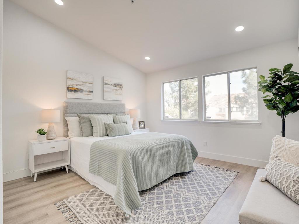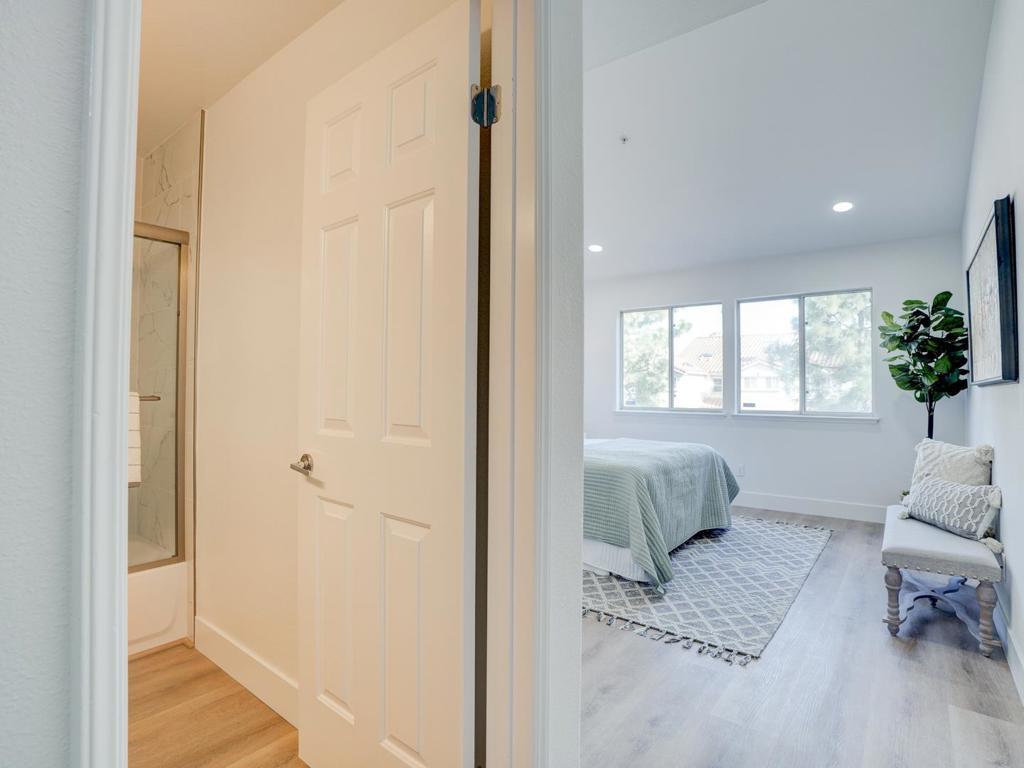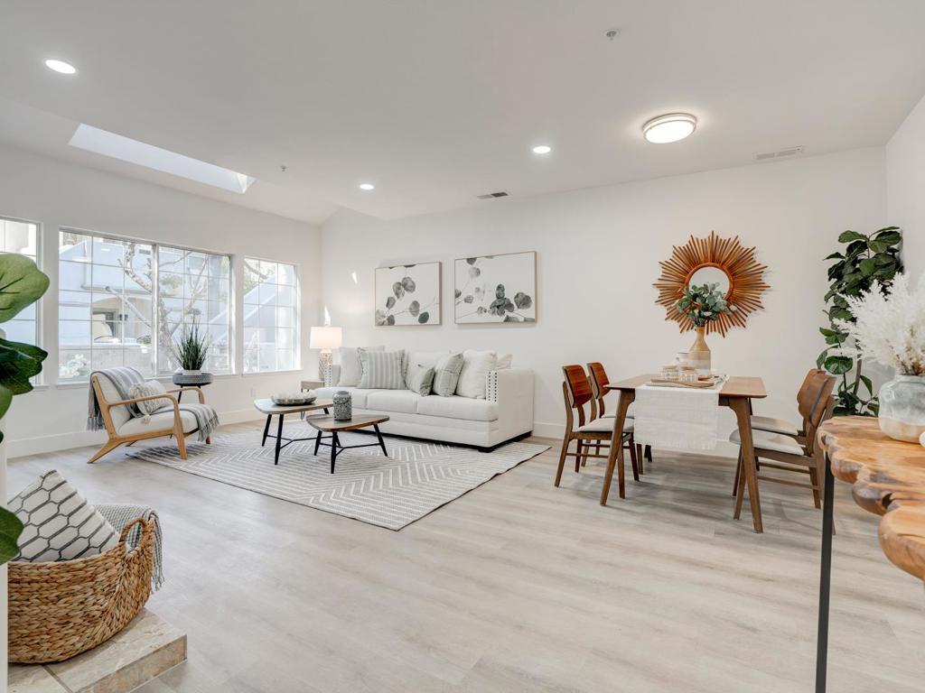 Welcome to this spacious remodeled town home in north valley ! Gated entrance to the private patio. Beautiful laminate flooring throughout, freshly painted, large living room with fireplace/skylight/vaulted high ceiling, full kitchen remodeled with new shaker cabinets, quartz counter top and new range oven/vent fan. all bath rooms are remodeled with everything new, powder room is on main level for convenience. Two very spacious bed room suites upstairs offering vaulted ceilings. The primary bedroom offers a large walk in closet and with a ton of space & an extra loft space for an office/ retreat/ nursing / hobbies . attached one car garage . assigned one car space in community. Lower HOA fee, greatly maintained, this North valley home offers lush landscaping, great amenities. Enjoy your pool, hot tub spa, basketball court, BBQ area,. Centrally located, minutes away from 101, 880, H Mart, 99 Ranch Market, Sprouts Market, restaurants, a golf course, easy commute to major tech companies. Amazing home in a quiet & convenient neighborhood ! Must see to appreciate !