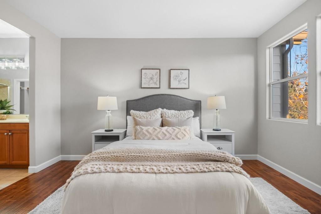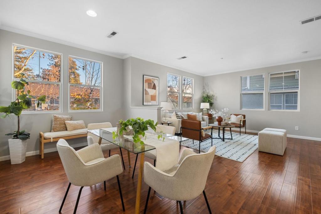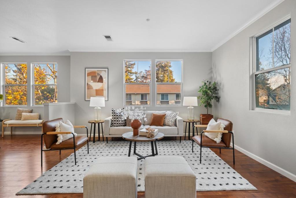 *East-facing and beautifully positioned, this captivating bright and quiet end-unit townhouse style home offers abundant natural light and an airy, comfortable living environment. The highly desirable open-concept main level features a spacious living and dining area paired with a convenient powder room, creating an ideal setting for both daily living and entertaining. Upgraded flooring throughout enhances the contemporary appeal. *The modern kitchen is thoughtfully updated with sleek new countertops, stainless steel appliances, and plentiful cabinetry for storage and organization. Enjoy everyday convenience with in-house laundry and year-round comfort with central AC and heating. The inviting primary suite features a walk-in closet and a marble-accented dual-sink bath. Additional highlights include an attached two-car garage. *Residents enjoy access to a welcoming community with parks, playgrounds, and scenic greenbeltsplus one of the lowest HOA dues in the area. The location is exceptional: near Summerdale Elem School (rated 8/10 for test scores on GreatSchools), close to retail, dining, and everyday essentials, within walking distance to VTA Light Rail, and offering easy access to major tech employers including Nvidia, Google, Apple, and Supermicro.