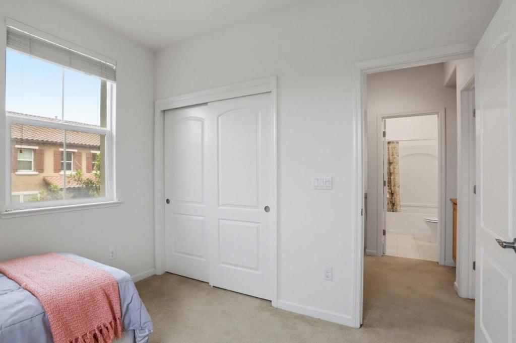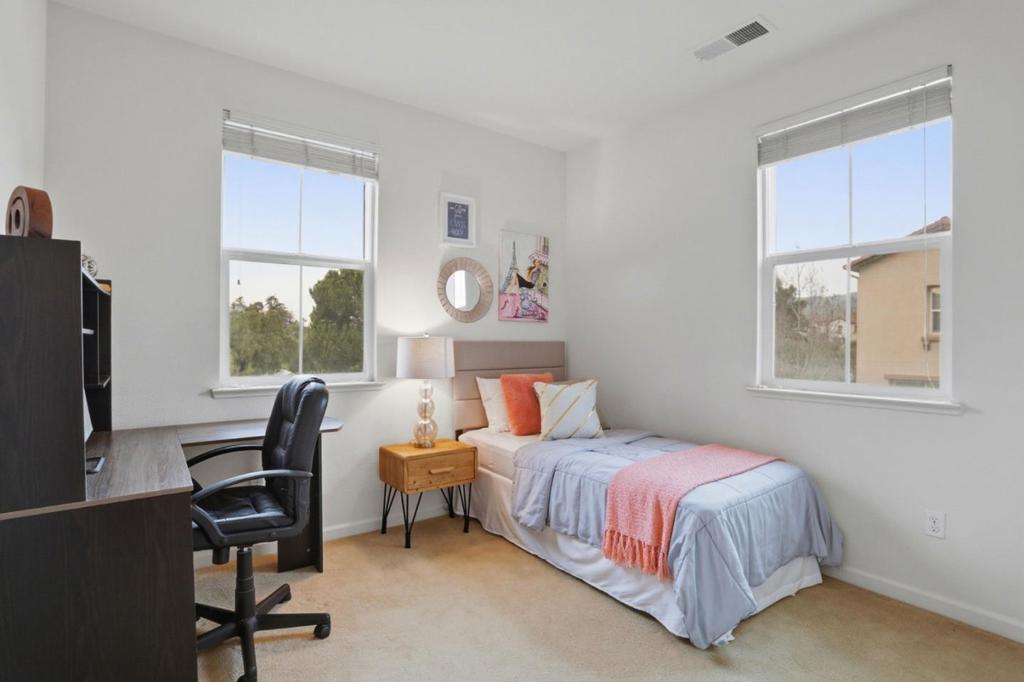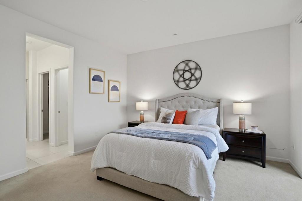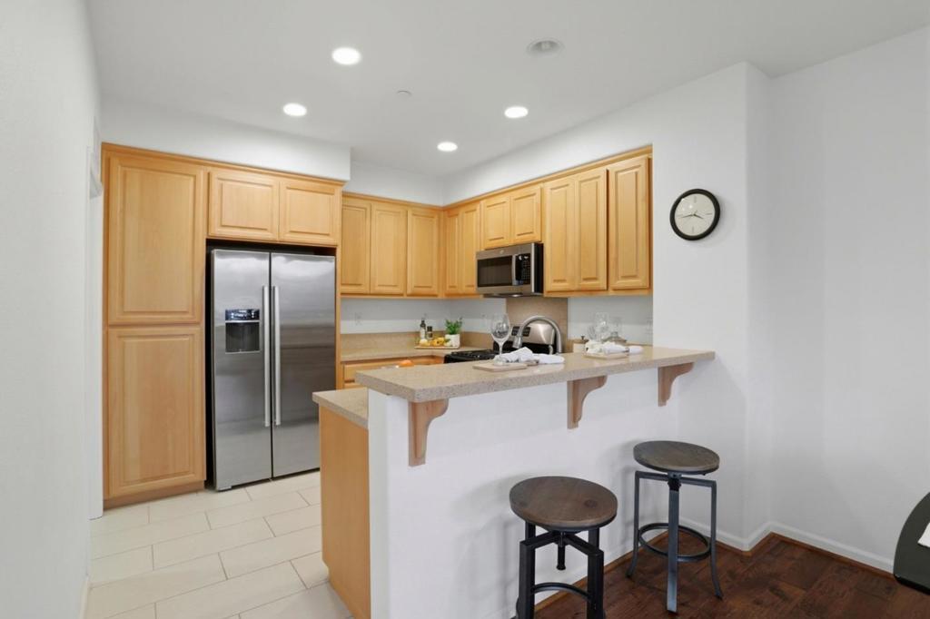 This light filled corner unit offers 1,316 sq ft with 2 bedrooms & 2.5 bathrooms, wrapped in walls of windows that bring abundant sunlight throughout the year & create an airy feel from the living space to both private balconies. Facing open space with garden views, the home offers a peaceful, tucked away setting. The U shaped kitchen is designed with granite counters, stainless steel appliances, a peninsula breakfast bar, recessed lighting & an attached laundry room that keeps daily routines effortless. It opens to the dining & living areas, where hardwood floors & abundant glass add warmth & comfort to everyday living. Step outside from the dining area to a balcony, while the spacious primary bedroom feels like a private retreat with its own balcony, walk in closet, natural light pouring in through a large sliding door. The primary bath features dual sinks & a large walk in shower. Dual pane windows enhance comfort & quiet, & a two car garage provides convenience & storage. Just outside your door, the community offers green space, play structures, picnic tables & BBQ areas, with HOA dues including water for the home for added value & convenience. Enjoy close proximity to Target, Sprouts, coffee, dining, Crunch Fitness, BART & VTA stations, with quick access to 680, 237 & 101.