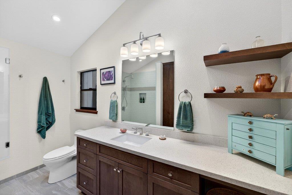 Located in the desirable Soquel Hills, 350 Aurora Road offers exceptional privacy, abundant sunshine, and mature redwood stands on 1.286 acres. This 3,183 sq ft home is thoughtfully designed to capture natural light and peaceful views, creating an ideal balance of comfort, functionality, and indooroutdoor living. The kitchen is a standout, featuring leather-finished granite countertops, high-end stainless steel appliances, generous cabinetry and workspace, a convenient pantry, and sweeping valley views. The spacious floor plan is well suited for everyday living and entertaining, with a large dining area off the kitchen, a welcoming living room at the entry, and a family room that doubles as a home theater with 7.1 surround sound and screen/projector, all included. The primary suite offers a walk-in closet and a spa-like bath with dual vanities, a side-jet shower, and a skylight. Outdoor spaces include a wraparound deck, a sun-filled pool with patio, and a fenced garden with raised beds. Additional features include a three-car garage, extensive storage, and ample guest parking. Convenient access to Silicon Valley, Santa Cruz, Scotts Valley, and Soquel.