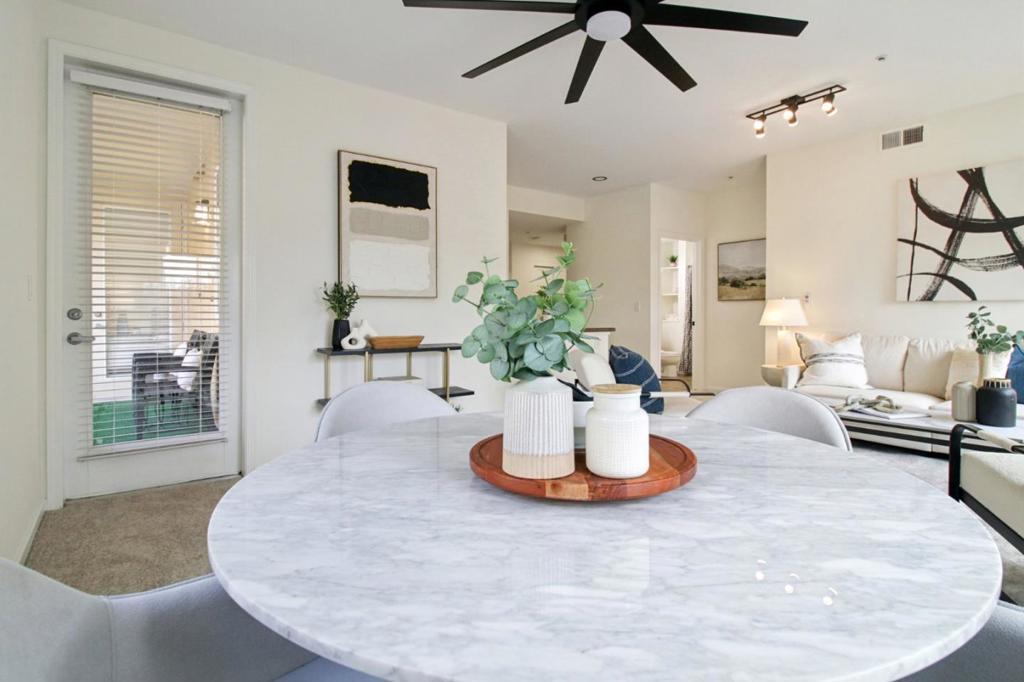 Elegant, light-filled corner residence featuring 2 bedrooms and 2 bathrooms with 1,264 sq ft of thoughtfully designed living space. Expansive windows provide exceptional all-day natural light, enhancing the open and well-appointed floor plan, perfect for both everyday living and entertaining. Recent updates include brand-new carpet, new appliances, and fresh interior paint, offering a truly move-in-ready experience. The home is ideally positioned facing the community entrance and includes two reserved parking spaces in a secure, gated garage. Residents enjoy resort-style amenities including a fully equipped fitness center, swimming pool, hot jacuzzi, reservable event and celebration rooms, guest suites available for overnight visitors, and optional additional storage units for purchase. Centrally located in the heart of Silicon Valley, just minutes from major tech campuses, upscale dining, shopping, and key commuter routes. This exceptional San Jose residence offers the perfect blend of comfort, convenience, and sophisticated urban living. Don't miss the opportunity to make this stunning home your own.