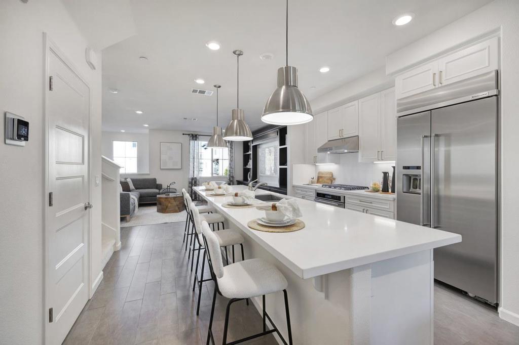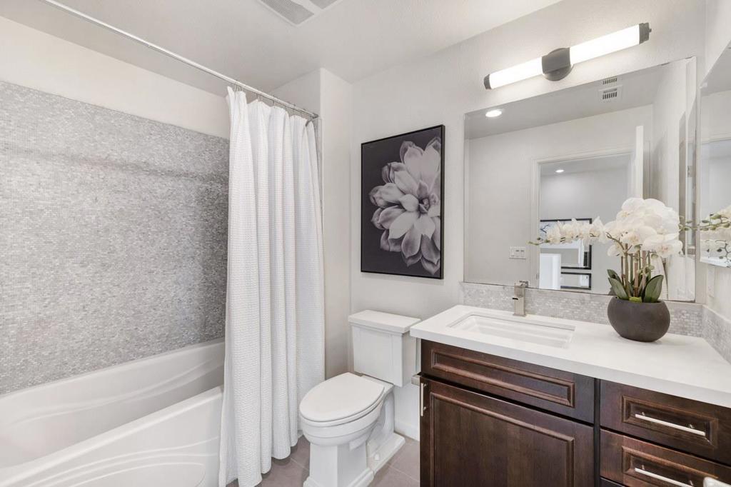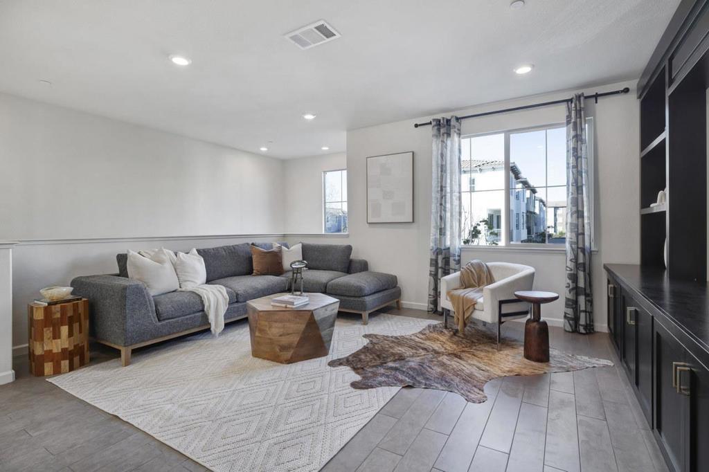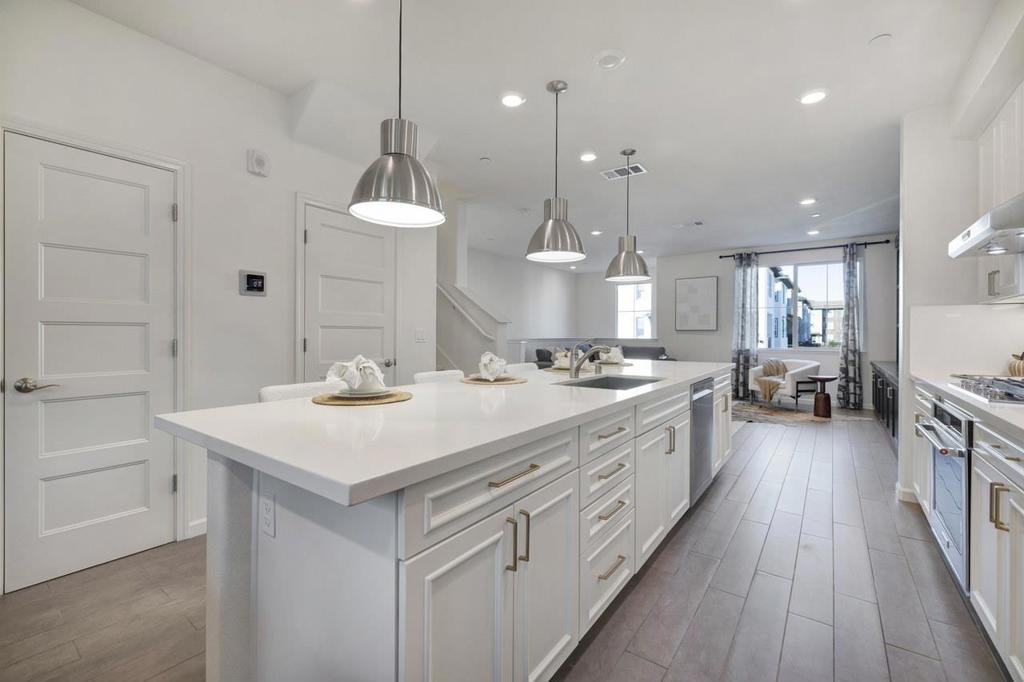 Welcome to life at Communications Hill! This spacious 4 bed/3.5 bath, 1995 sqft tri-level townhome is open, bright, cheery and modern with high ceilings and an attached 2-car garage. Originally a model home, it showcases $150k in builder upgrades, and was recently updated. As you enter, you'll be greeted by the smell of brand new carpet and paint, as your eyes enjoy the fresh, clean appearance and an abundance of light. The first floor features a bedroom with ensuite perfect for guests or home office. Enjoy hosting in the wide open 2nd level, which features a bright, elegant kitchen equipped with a gas cooktop, quartz countertops, dishwasher, exhaust fan, and industrial pendant lights. The expansive island is the highlight feature of the home! Convenient inside laundry closet with Whirlpool washer/dryer, and hookups for both gas and electric. Rest on the top floor with well positioned rooms and stylish accents in the bathrooms. The primary features a large walk in closet and luxurious ensuite. Additional features include central AC and heat, and energy-efficient elements like double pane windows, tankless water heater, and a water softener. Convenient location close to parks, trails, shopping, dining, with proximity to Caltrain, Bus, and Light Rail with easy access to the 87 Fwy.