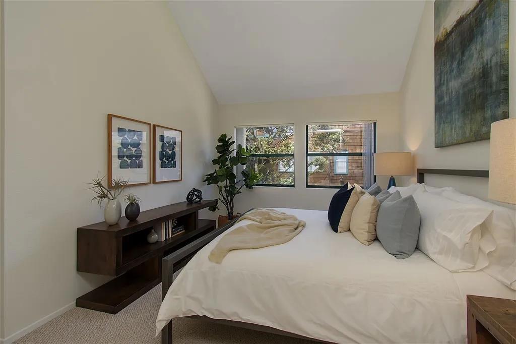 Available: Mar 22nd Application Fee is required. No move-in Fee No Pet Fee Welcome to a rare opportunity in coveted University Towne Square! This rarely available, remodeled second-story condo is light and bright, featuring vaulted ceilings and a gorgeous updated kitchen. Enjoy cozy evenings by the fireplace or step outside to your private deck. The spacious master suite offers multiple closets, and both bathrooms have been beautifully remodeled. Practical perks include in-unit laundry and two parking spaces in the secure, gated garage. Community amenities feature a recreation room, pool, and spa. The fabulous location puts you within walking distance of both Costa Verde and UTC Mall for endless shopping, dining, and entertainment