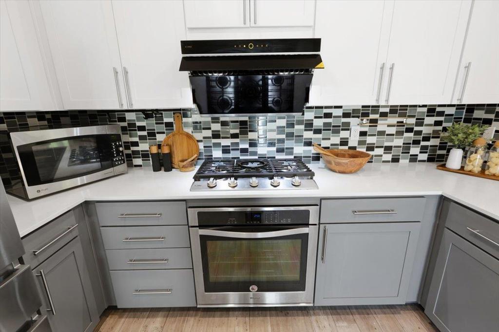 Dishwasher, Electric Oven, Gas Cooktop, Microwave, Refrigerator, Vented Exhaust Fan