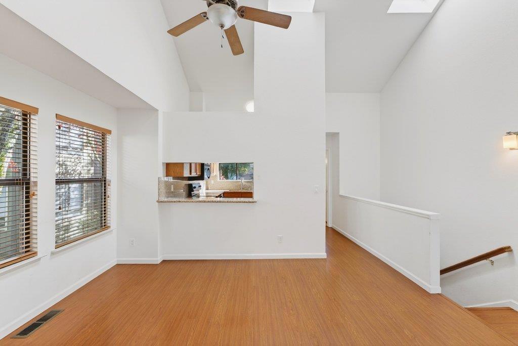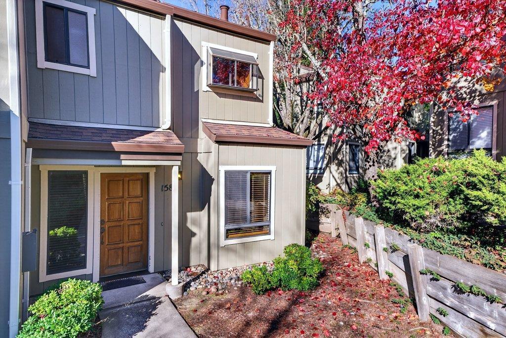 Experience one of the most sought after floor plans in Scotts Valleys centrally located Hidden Oaks community. This desirable end unit, reverse floor plan offers two comfortable bedrooms, a full bath, and laundry on the ground level. Upstairs, vaulted ceilings and skylights fill the open kitchen, dining, and living areas with natural light, along with a second full bath. Cozy up by the fireplace or step out onto your private deck to enjoy beautiful sunset views. The home features upgraded granite countertops in the kitchen and bathrooms, laminate flooring upstairs, and carpeted bedrooms below. Just steps from your front door is a detached one-car garage with additional storage space. Hidden Oaks offers resort style amenities including two pools and four hot tubs, and is conveniently located near transit, Skypark, Scotts Valley Middle School, the library, shopping, dining, and more. Set within a top rated school district and a close-knit, low-crime community, this home showcases why Scotts Valley is such a wonderful place to call home.