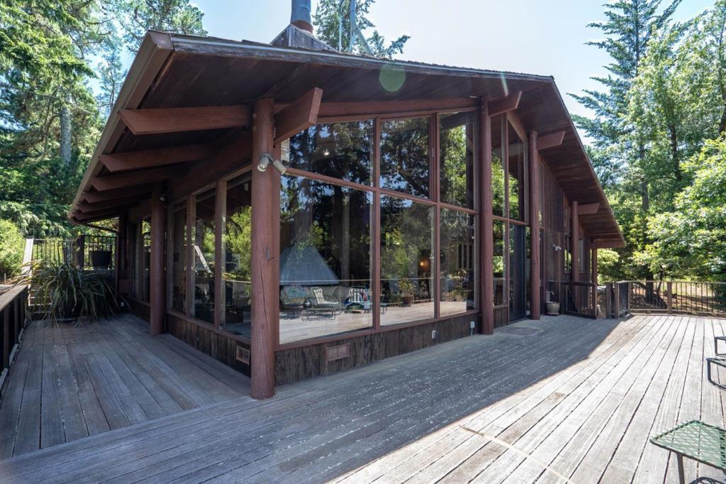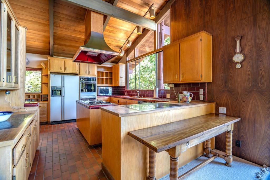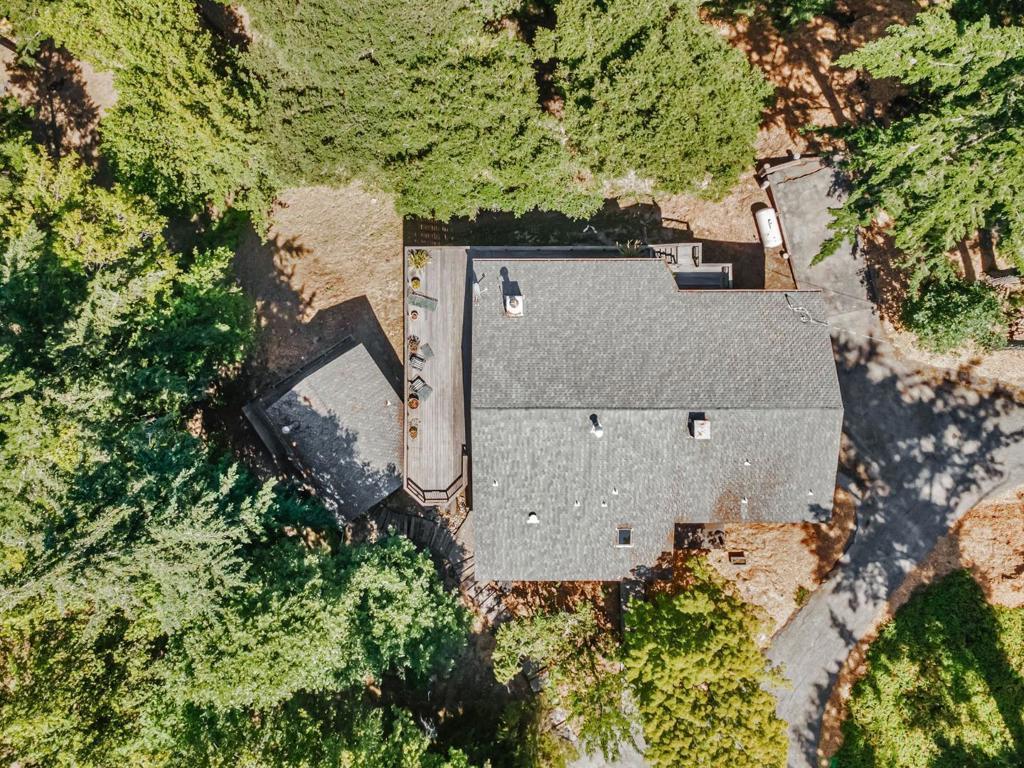 Step inside and step back in time to this to this stunning Henrik Bull-style home in Skywood Acres, where classic charm meets modern comfort. Nestled in a sunny tranquil setting, this architectural gem opens into a breathtaking great room with cathedral ceilings and walls of windows that frame sweeping treetop views. This seamless blend of indoor/outdoor living extends to an expansive deck offering a perfect retreat that harmonizes with nature. Reminiscent of a mountain ski lodge, this 2510 sqft private haven enjoys its own sunny microclimate and offers the ultimate escape, just 14 minutes to 280, 25 minutes to Stanford, minutes from Alices Restaurant, and private access to Wunderlick Park, Portola Valley schools. Main home features a primary bedroom that includes bathroom, dressing room and private office. Main level boasts a well-appointed kitchen, custom wood built-ins, opens to a grand living area. Downstairs 2 bedrooms and bath, 3 car garage with wine closet. Detached guest studio with sleeping loft. 1.5 acre lot includes a former sport court ready for new possibilities Make this getaway your private Shangri-La