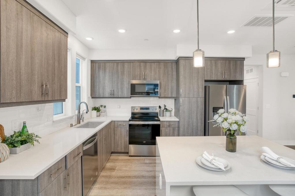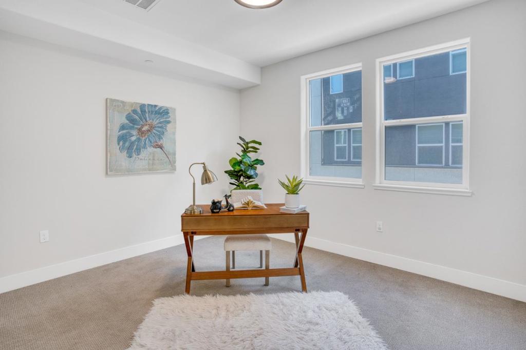 Welcome to this bright and open 2-story end-unit Townhouse style condo, just three years new and ideally located near Santana Row with quick access to major highways for an easy commute. Offering 1,661 sq ft of well-planned space, the open living and dining areas are filled with natural light and complemented by stylish flooring throughout. The spacious kitchen flows seamlessly for everyday living and entertaining. All three bedrooms and two full bathrooms are conveniently located on the same level, along with an integrated laundry area. Central AC and forced air heating provide year-round comfort, while a one-car garage offers secure parking and storage.