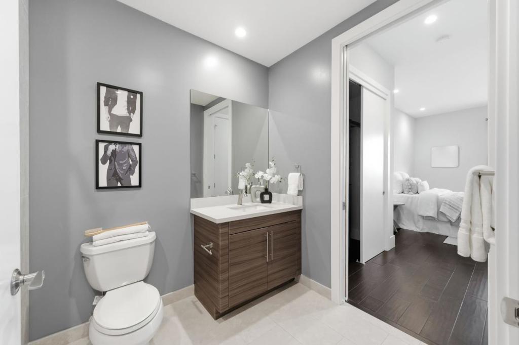 This oversized 2-bed condo is the largest floor plan in the building w/more sq ft than 3-bed units AND an ideal location walkable to Caltrain and tech shuttles! Top-floor residence offers expansive living area w/ ample room for a dedicated home office, set apart from the main entertaining space. Set in a newer, meticulously maintained building, the home blends comfort, style & convenience. High ceilings & abundant natural light enhance the open-concept layout, ideal for both everyday living & entertaining. The gourmet kitchen is a chef's dream, featuring stainless steel appliances, quartz countertops, & custom cabinetry. The spacious living area flows to a private patio, perfect for relaxing or dining al fresco. Generous primary suite includes a gorgeous walk-in closet & spa-inspired bath. The 2nd bdrm (en-suite) offers flexibility for guests, a home office, or family needs. Additional highlights include an in-unit walk-in laundry room, large storage area/pantry off the kitchen, central A/C, 2 assigned parking spaces, a public EV charger, & low HOA dues. Residents enjoy a communal BBQ area for cooking/entertaining. Ideally located in desirable Belmont, close to top-rated schools, Caltrain, tech shuttles & vibrant shopping and dining. Close to major highways and commuter routes.