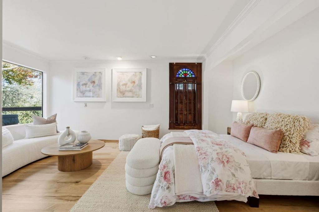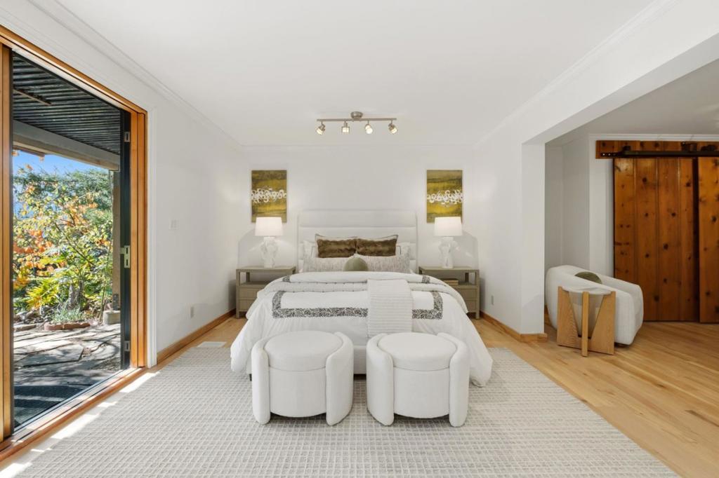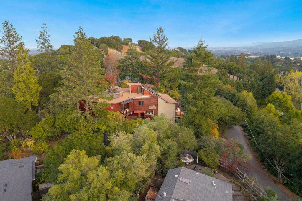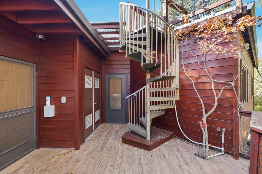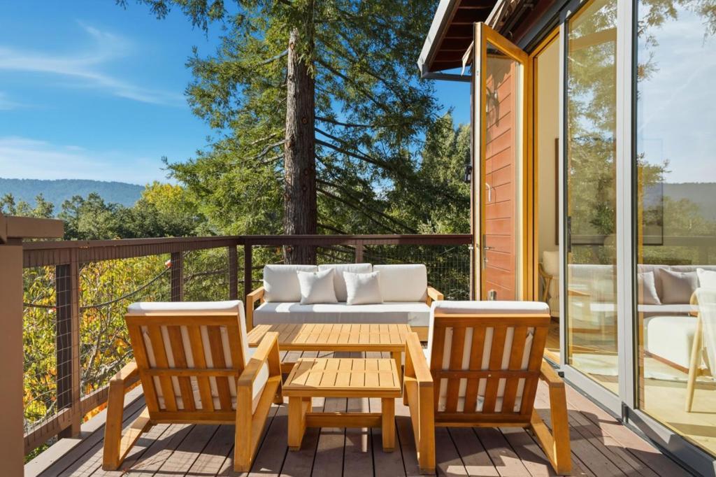 Welcome to a residence where artistry meets architecture. Set in Emerald Hills on an expansive view lot, the home was designed for those who value quality, creativity, and originality. From the custom iron gate by Burning Man artist Bryan Tedrick to the antique Santa Fe stained-glass entry window, every detail tells a story. Soaring ceilings and dual 7×20 folding glass doors dissolve boundaries between inside and out, opening to expansive decks with sweeping views. The chef's kitchen features a granite island, six-burner range with pot filler, oversized refrigerator, and custom cabinetry. The primary suite offers a spa-inspired granite bath with steam shower, soaking tub, walk-in closet, and gas fireplace. The lower level, once an art gallery, invites income potential or flexible living space with separate access. The grounds include terraced gardens, mature fruit trees, solar panels with EV charging, and cedar outbuildings ideal for a gym, studio, or retreat. Close to amenities, but it feels like a world away.