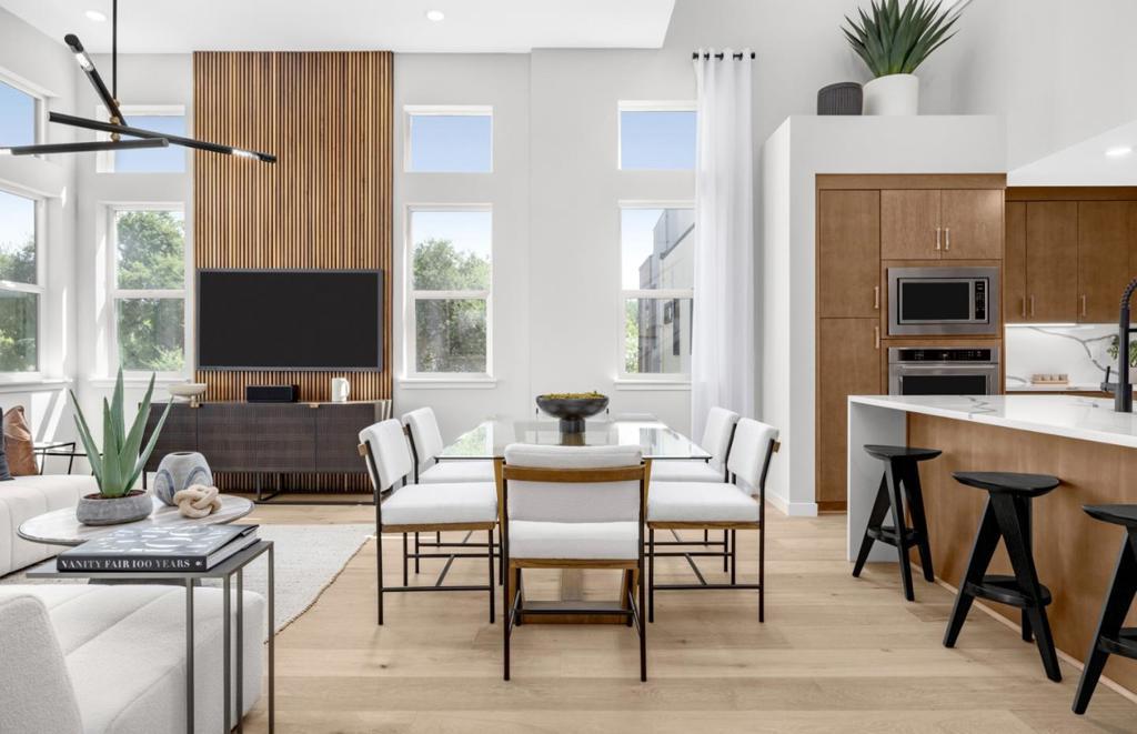 Consistently listed among the county's most desirable places to live, Saratoga is the setting for the Elms, a boutique community of new construction townhomes style condos. The Elms beautiful plan 3 home has solar purchase included and offers gorgeous high ceilings with open living area, and gourmet kitchen with quartz countertops, chef kitchen package, Stainless-steel appliances, upgraded cabinets, and beautiful luxury vinyl plank flooring throughout living areas. All design options have been selected for this home by our professional Designer. Spend time with friends and family or just relax upstairs in the open gathering room, kitchen, and cafe. At the end of the day, enjoy quiet solitude on the top-level mezzanine with indoor/outdoor living. Pictures are of model home not the actual home.