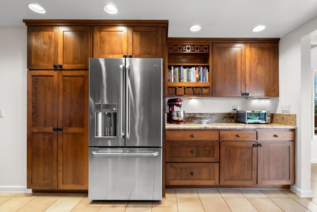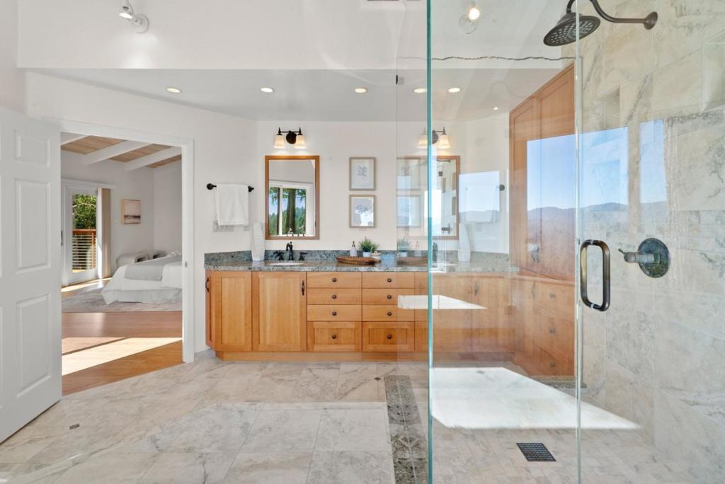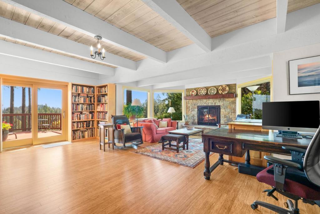 Perched above the treetops with breathtaking 40-mile views, this remarkable retreat is designed to live in harmony with its natural surroundings and has been meticulously maintained with exceptional attention to detail. Expansive picture windows invite in abundant light and frame sweeping redwood and ridgeline vistas, creating a peaceful, sanctuary-like feel throughout the home. The kitchen is warm and inviting, featuring granite countertops, custom cabinetry, and high-end appliances, and flows seamlessly into an intimate dining area surrounded by panoramic views. The spa-inspired primary bathroom offers a serene escape, thoughtfully designed for comfort and relaxation. Outdoor living truly shines here. Enjoy the expansive deck complete with a hot tub, raised garden beds, and a one-of-a-kind bench built around a majestic redwood treean unforgettable place to unwind and take in the beauty of the setting. Lovingly cared for and thoughtfully improved over time, this home offers a rare blend of privacy, comfort, and inspiration. Ideally located for commuters to Silicon Valley or Santa Cruz, and perfectly suited for remote work, this is a place where peace, beauty, and everyday living come together. Once you arrive, you may never want to leave.