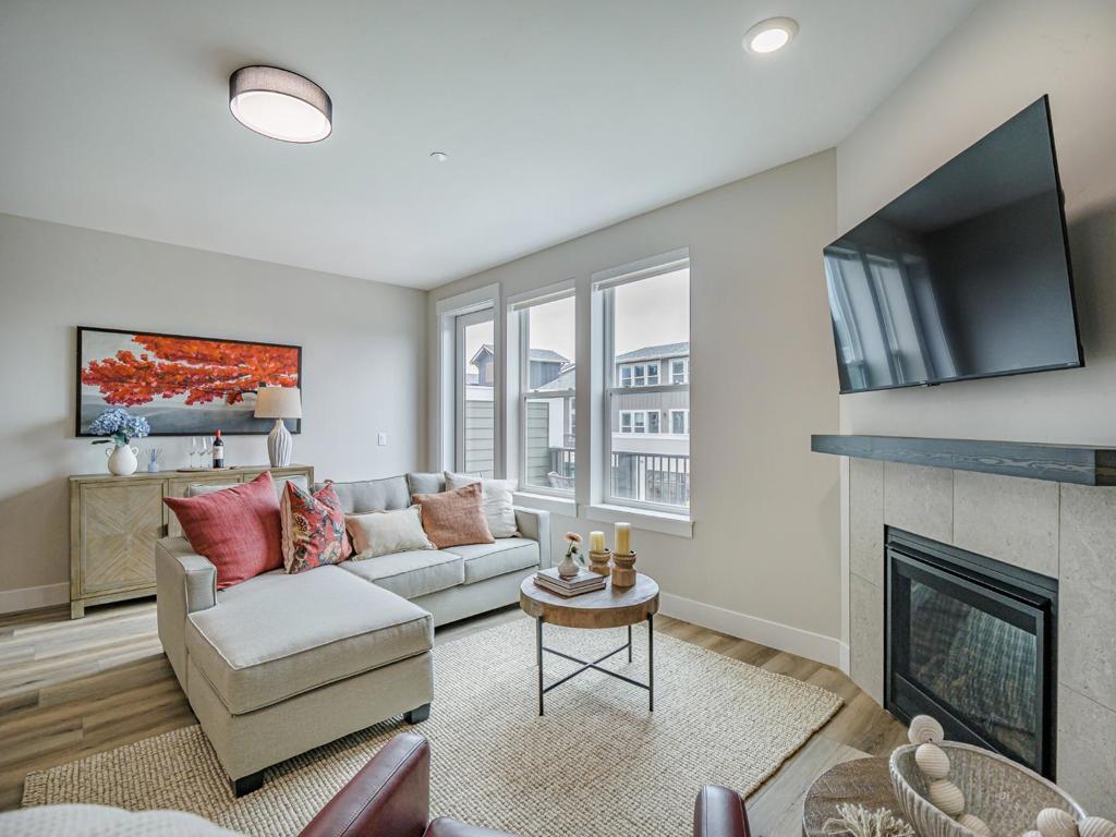 Featuring a vibrant, pedestrian-friendly town square, the Aptos Village is a thoughtfully planned new community in the heart of Santa Cruz County. Enjoy walkable access to Cat & Cloud, New Leaf Market, tasting rooms, boutique retail, and multiple dining options. Located in Building 2, this 3-bedroom residence features the largest floorplan in Phase 2. The spacious great room opens to a private balcony overlooking Aptos Village Way, perfect for morning coffee or sunset unwinding. A guest bedroom and full bathroom are located on the main level, while upstairs offers a primary suite and junior suite, both with walk-in closets. An attached garage and additional parking complete the home. New Construction includes stainless steel appliances, washer and dryer, and window coverings. Minutes from Seacliff Beach and the Forest of Nisene Marks State Park, enjoy the best of the Central Coast- from sandy beaches to miles of redwood-lined trails. Additional floorplans available with 1-bedroom units starting at $979,000 and 2-bedroom homes starting at $1,050,000. ***Photos are of the staged home, same floorplan.***
